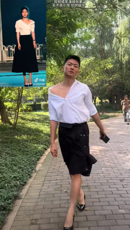 Không chỉ những bộ cánh "chanh sả", mà loạt đồ công sở, đời thường, bao gồm cả trang phục khi là sinh viên đi làm thêm vất vả của Hứa Nghiên cũng được hội chị em trên Douyin, Xiaohongshu đua nhau "cheap moment". Tuy nhiên, không phải ai cũng thành công "lên đồ" khí chất như Hứa Nghiên vì trang phục nhìn qua giống nhau nhưng phom dáng vẫn chênh lệch.