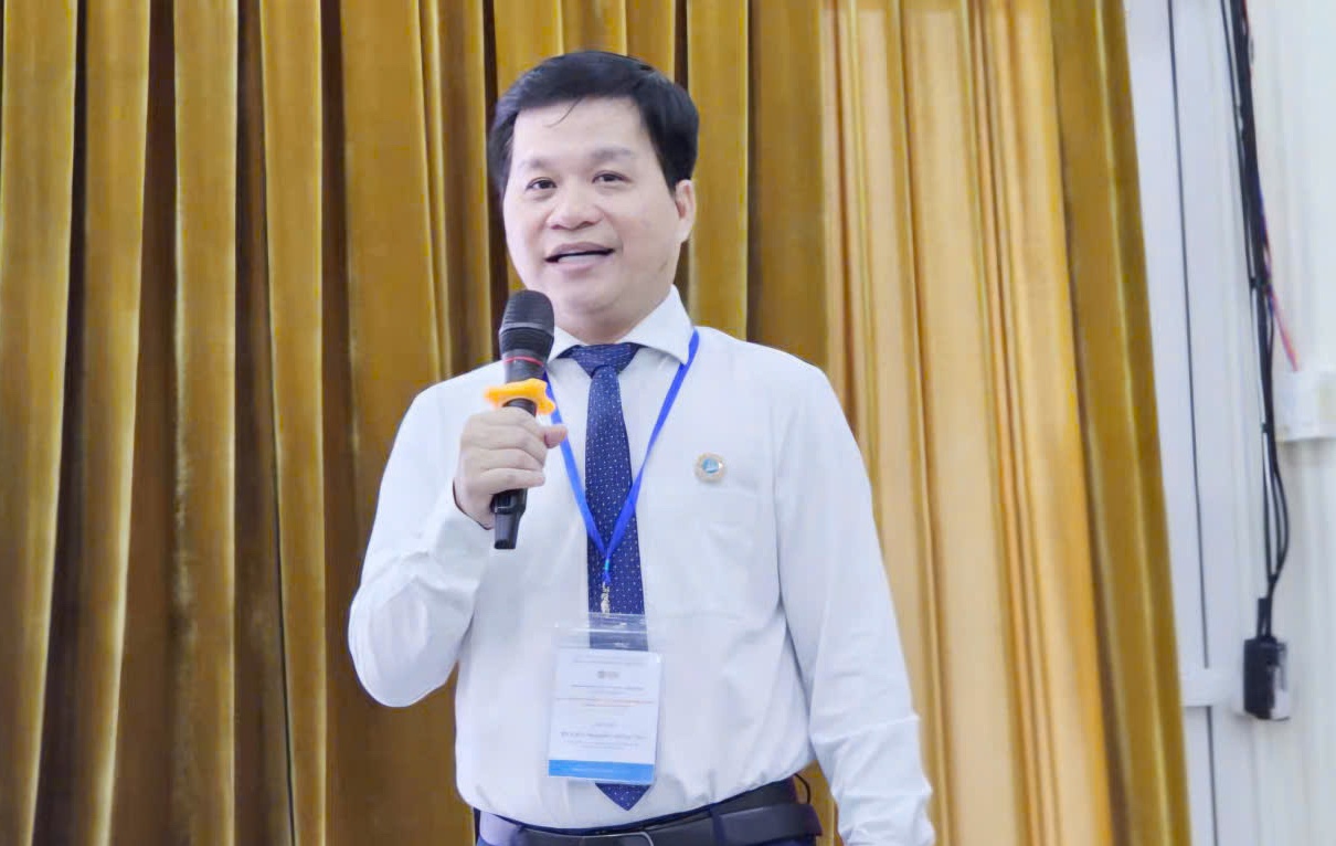 Bác sĩ chuyên khoa II Nguyễn Hồng Tâm, Giám đốc Trung tâm Kiểm soát Bệnh tật TP.HCM (HCDC), báo cáo tại hội nghị. Ảnh: Nguyễn Thuận.