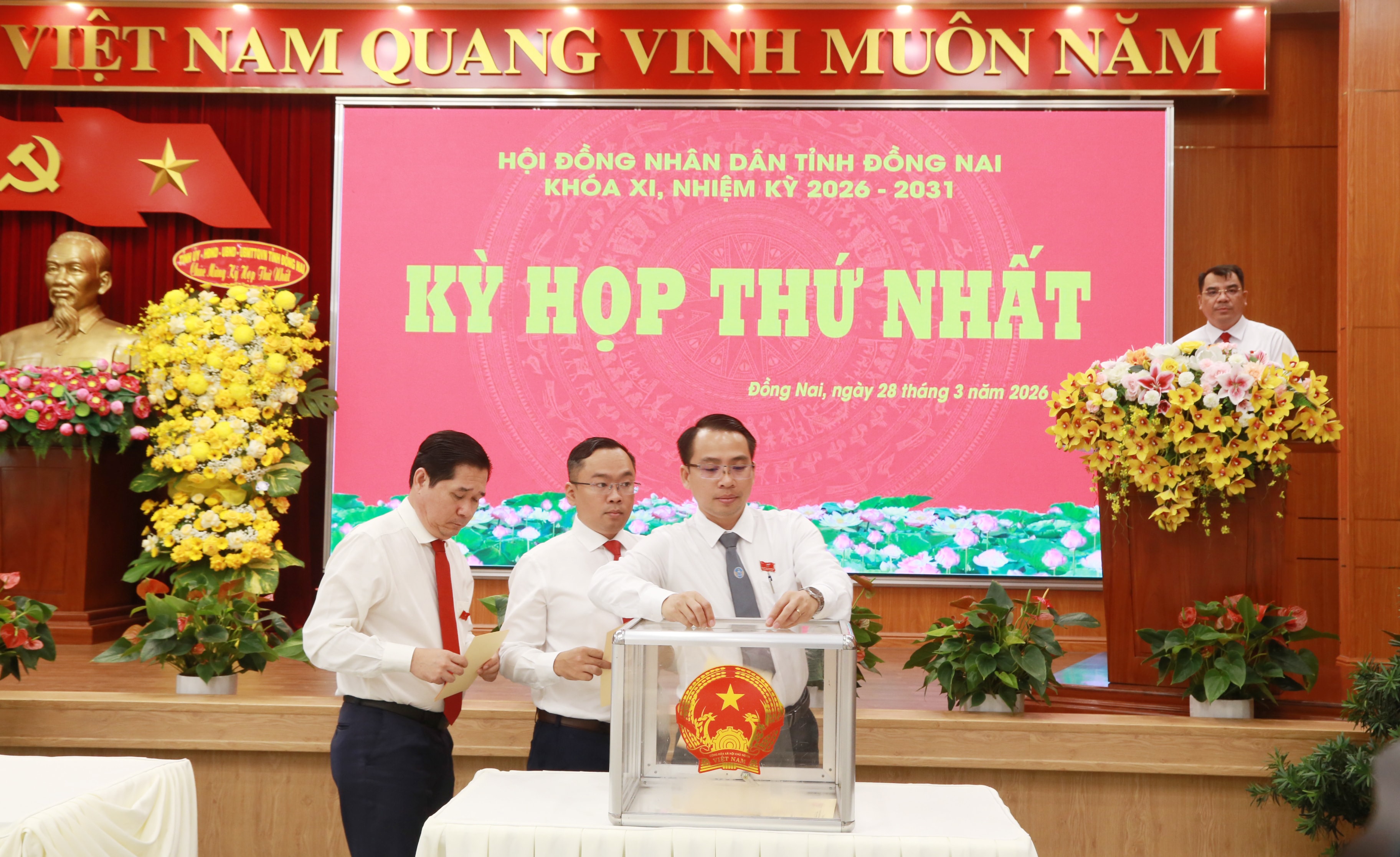 Đại biểu HĐND tỉnh Đồng Nai bỏ phiếu bầu các chức danh chủ chốt nhiệm kỳ 2026 – 2031. Ảnh: Văn Dũng