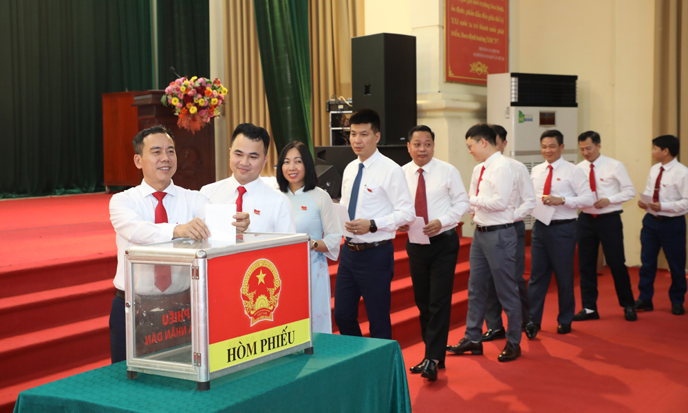 Đại biểu HĐND phường Đồng Nguyên bỏ phiếu bầu chức danh Chủ tịch HĐND phường khóa XXVI, nhiệm kỳ 2026-2031.