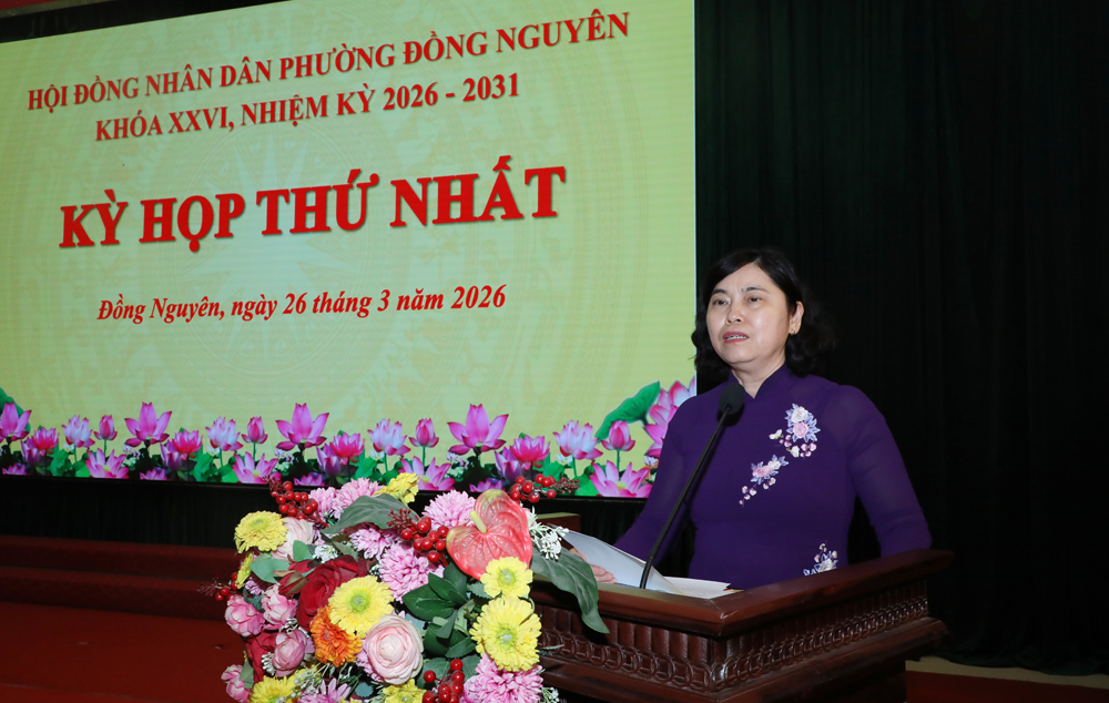 Phát biểu chỉ đạo tại kỳ họp, đồng chí Trần Thị Hằng ghi nhận, đánh giá cao công tác lãnh đạo, chỉ đạo của cấp ủy Đảng, chính quyền, MTTQ và các tổ chức chính trị - xã hội phường Đồng Nguyên trong việc tổ chức thành công cuộc bầu cử đại biểu Quốc hội và đại biểu HĐND các cấp nhiệm kỳ 2026-2031. Đồng chí gửi lời chúc mừng tới các vị đại biểu HĐND phường Đồng Nguyên đã được cử tri tín nhiệm bầu chọn, các đồng chí vừa được HĐND phường bầu giữ các chức danh chủ chốt của HĐND và UBND phường nhiệm kỳ 2026 – 2031. Nhấn mạnh, đây là niềm vinh dự lớn, đồng thời cũng là trách nhiệm hết sức nặng nề trước Đảng, trước Nhân dân, đề nghị các đồng chí tiếp tục phát huy tinh thần trách nhiệm, giữ vững phẩm chất đạo đức, bản lĩnh chính trị; nêu cao tinh thần đoàn kết, thống nhất; chủ động, sáng tạo trong lãnh đạo, điều hành; nói đi đôi với làm, dám nghĩ, dám làm, dám chịu trách nhiệm vì lợi ích chung.