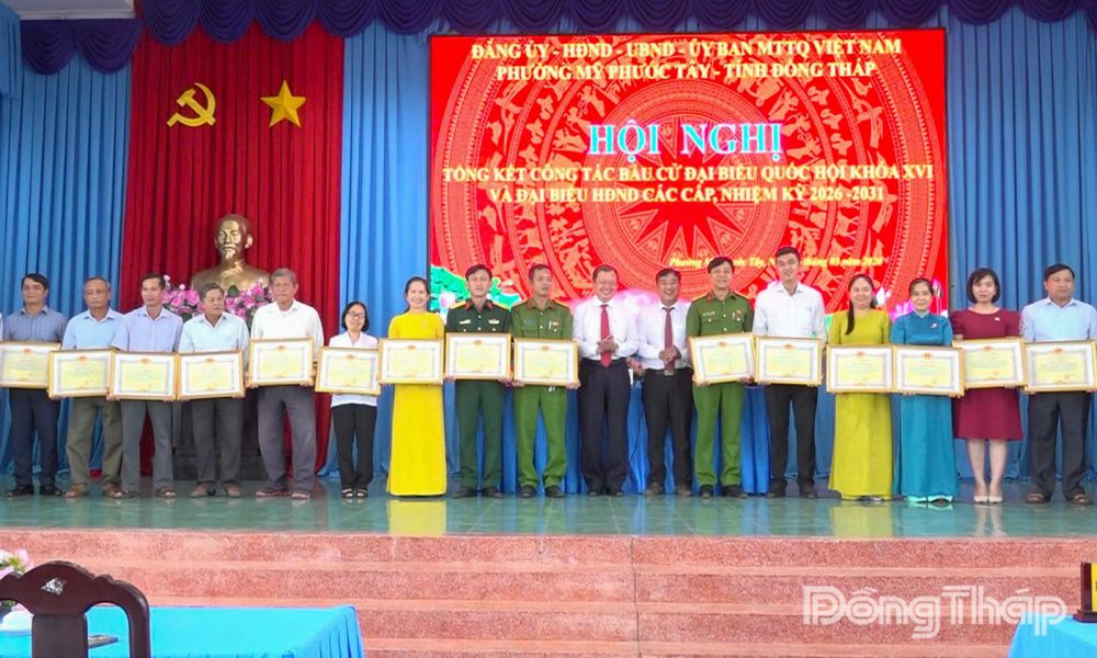 Dịp này, Ủy ban bầu cử phường Mỹ Phước Tây khen thưởng 18 tập thể và 56 cá nhân có nhiều đóng góp trong công tác bầu cử Đại biểu Quốc hội khóa XVI và Đại biểu HĐND các cấp nhiệm kỳ 2026 - 2031 trên địa bàn phường.