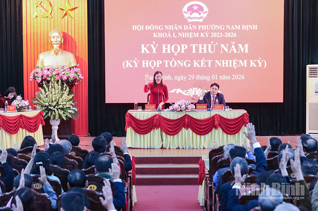Tại kỳ họp tổng kết, HĐND phường Nam Định đã xem xét, thảo luận các tờ trình của UBND phường về: Kế hoạch phát triển kinh tế - xã hội giai đoạn 2026-2030; việc tạm giao chỉ tiêu biên chế cán bộ, công chức khối chính quyền địa phương năm 2026. Các đại biểu nghe báo cáo thẩm tra của các Ban HĐND; tiến hành bầu bổ sung Ủy viên UBND phường.