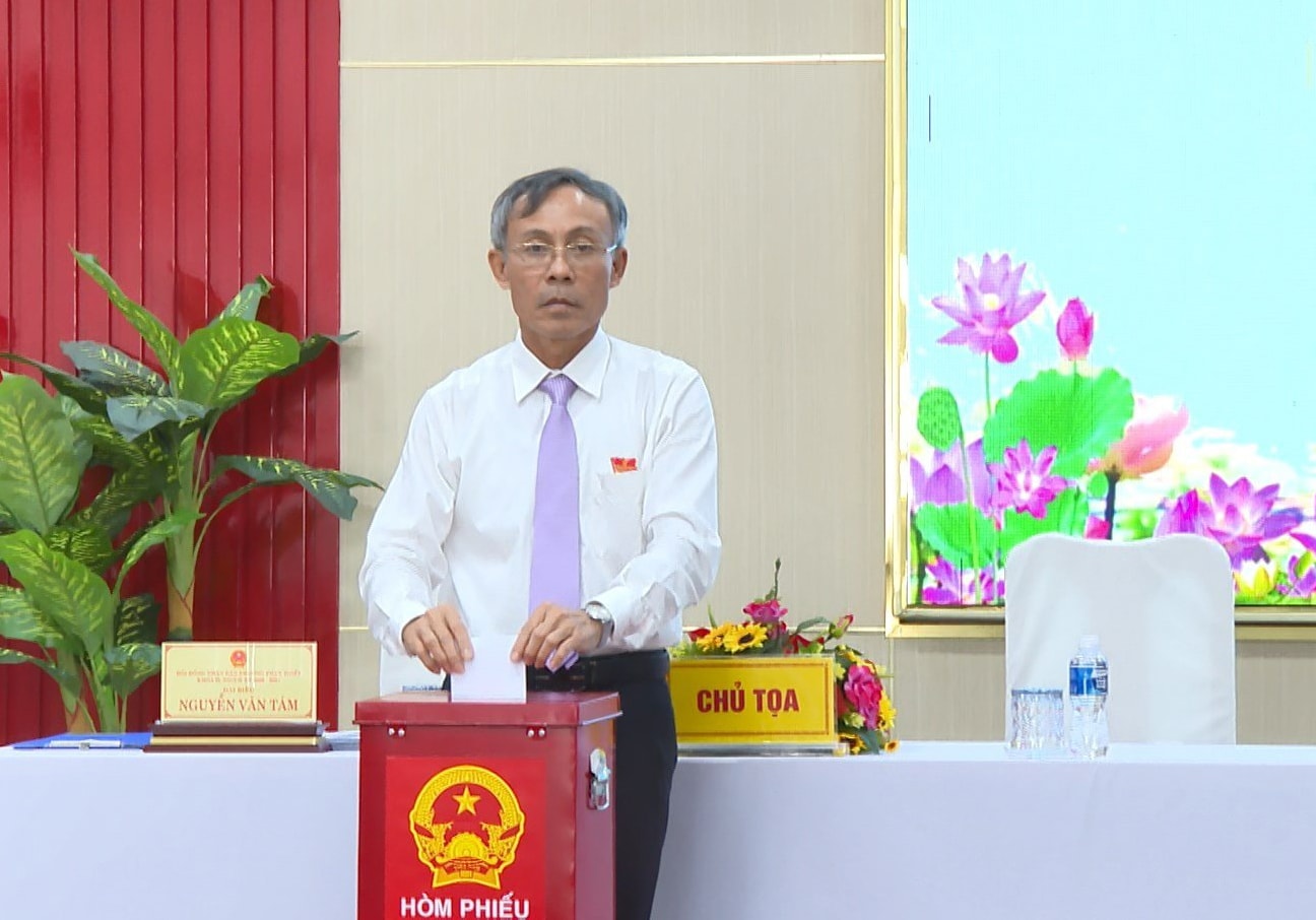 Chủ tịch HĐND phường Phan Thiết Khóa I Nguyễn Văn Tám bỏ phiếu bầu các chức danh