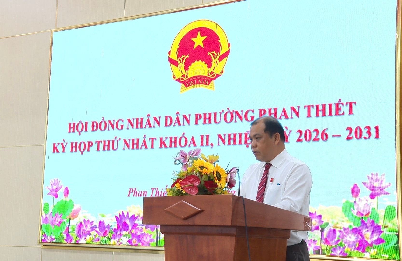 Chủ tịch UBND phường Phan Thiết Trần Nguyên Lộc phát biểu nhận nhiệm vụ