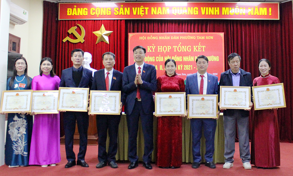 Nhân dịp này, 2 tập thể và 16 cá nhân có thành tích xuất sắc trong công tác HĐND phường được Chủ tịch UBND phường Tam Sơn khen thưởng.