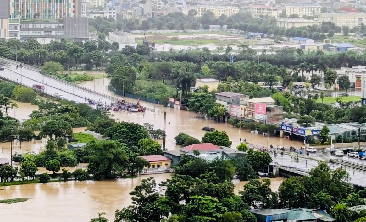 Đường 70 đoạn qua cầu Ngà (phường Xuân Phương) bị ngập sâu trong mùa mưa bão năm 2025. Ảnh: Quý Nguyễn