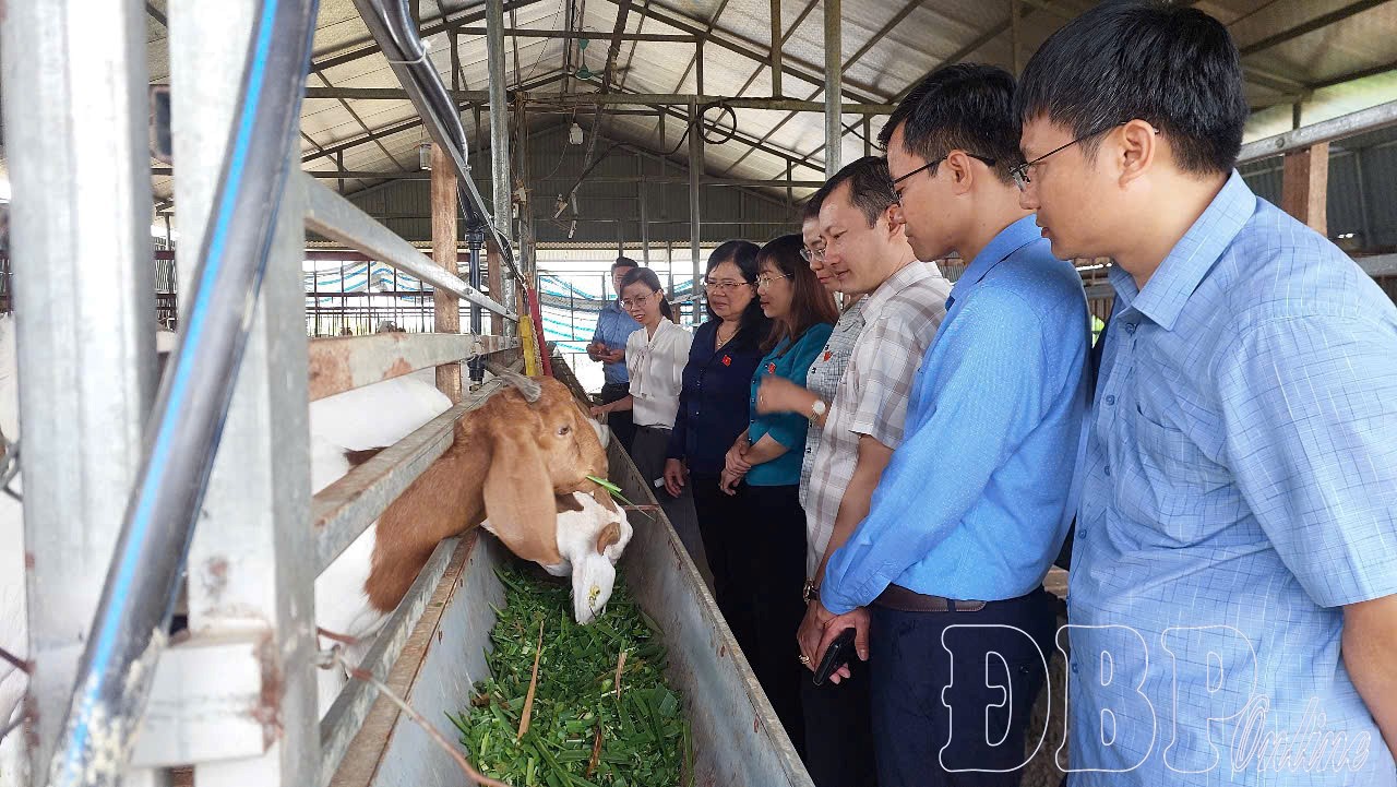 Đoàn giám sát Thường trực HĐND tỉnh khảo sát mô hình nuôi dê tại Trung tâm khuyến nông - Giống cây trồng, vật nuôi tỉnh Điện Biên.