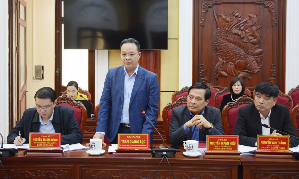 Lãnh đạo phường Kinh Bắc báo cáo công tác triển khai bầu cử tại địa phương.