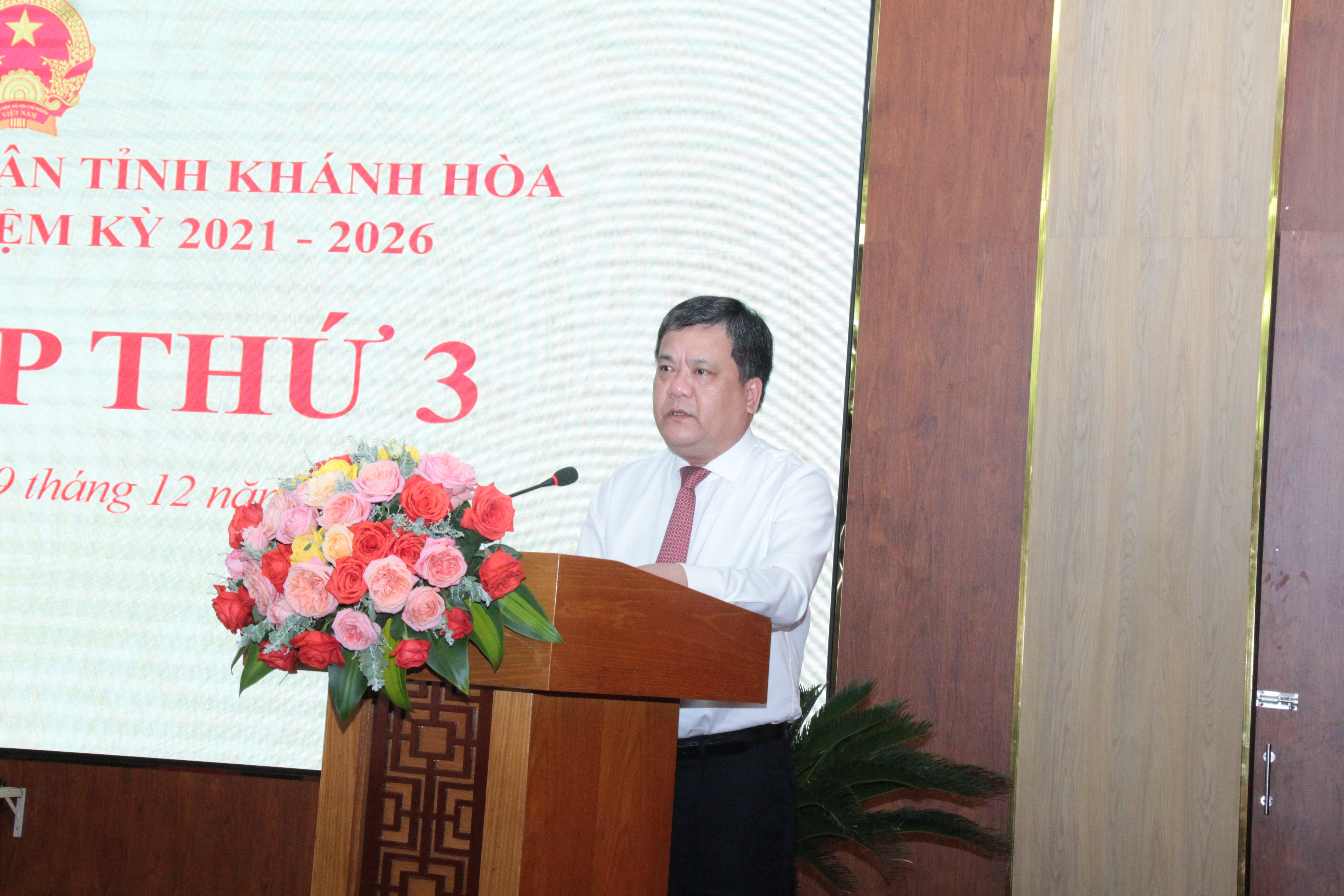 Phát biểu tiếp thu, giải trình ý kiến của đại biểu HĐND tỉnh, Chủ tịch UBND tỉnh Khánh Hòa Trần Phong đã làm rõ các nội dung thuộc 4 nhóm vấn đề lớn, gồm: khắc phục hậu quả mưa lũ, tăng cường phòng, chống thiên tai; thực hiện nhiệm vụ phát triển kinh tế – xã hội của tỉnh; hoạt động của chính quyền địa phương 2 cấp; thực hiện quy hoạch và mục tiêu xây dựng Khánh Hòa trở thành thành phố trực thuộc Trung ương.