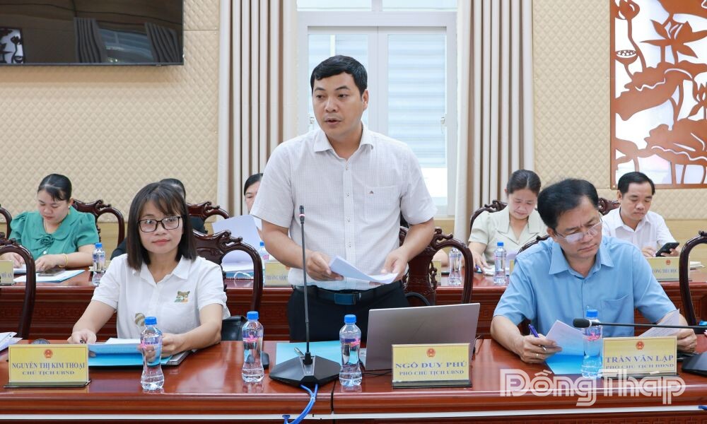 Lãnh đạo xã Tháp Mười báo cáo tình hình thực hiện các khoản thu đầu năm học 2025 - 2026.