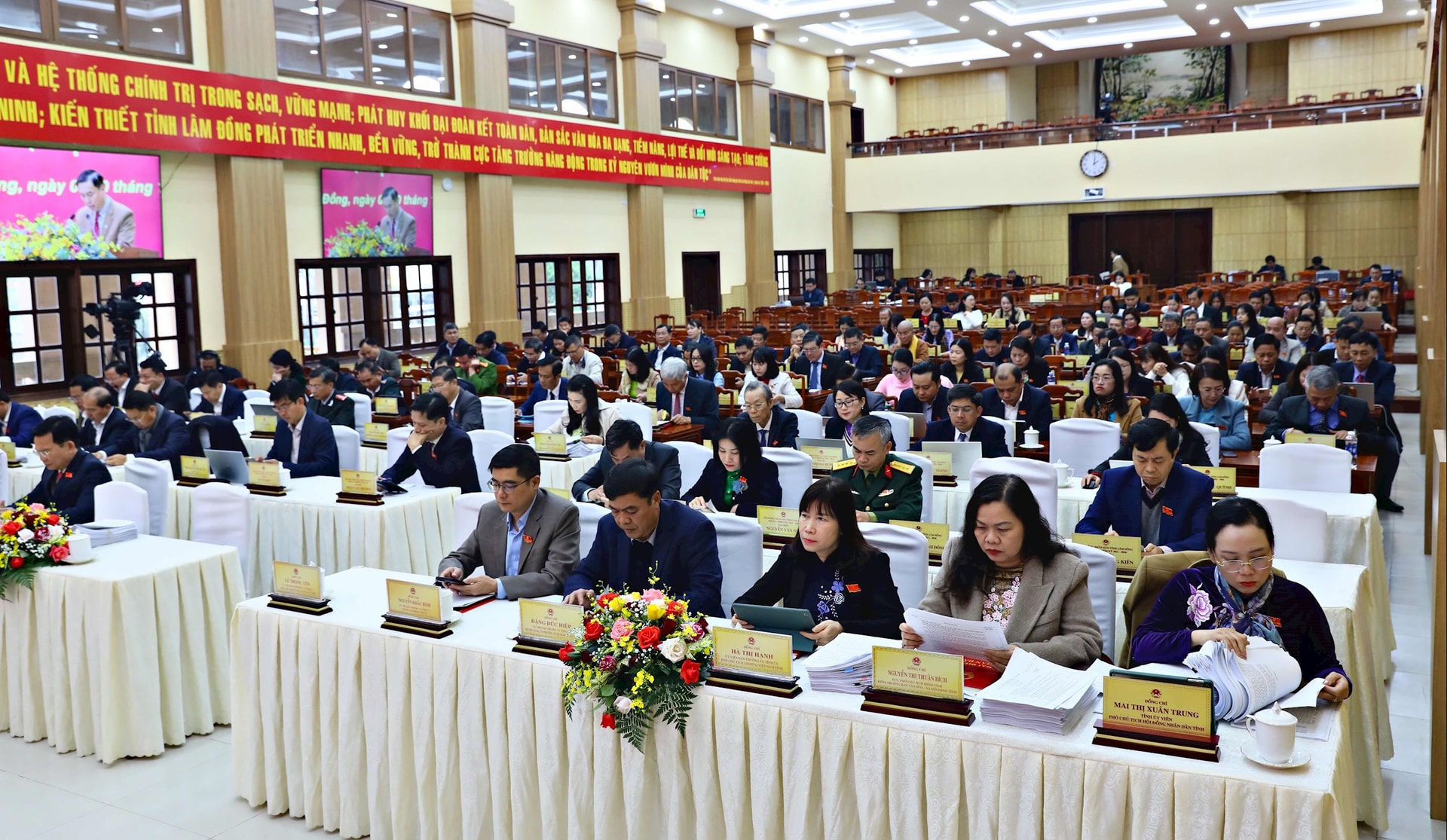 HĐND tỉnh đã nghiên cứu, thảo luận kỹ các báo cáo, tờ trình dự thảo Nghị quyết và đã biểu quyết, nhất trí thông qua 21 Nghị quyết. HĐND tỉnh đã thảo luận, biểu quyết thông qua Nghị quyết về nhiệm vụ phát triển kinh tế - xã hội năm 2026, với các mục tiêu kinh tế - xã hội chủ yếu, 12 nhóm chỉ tiêu trọng tâm.