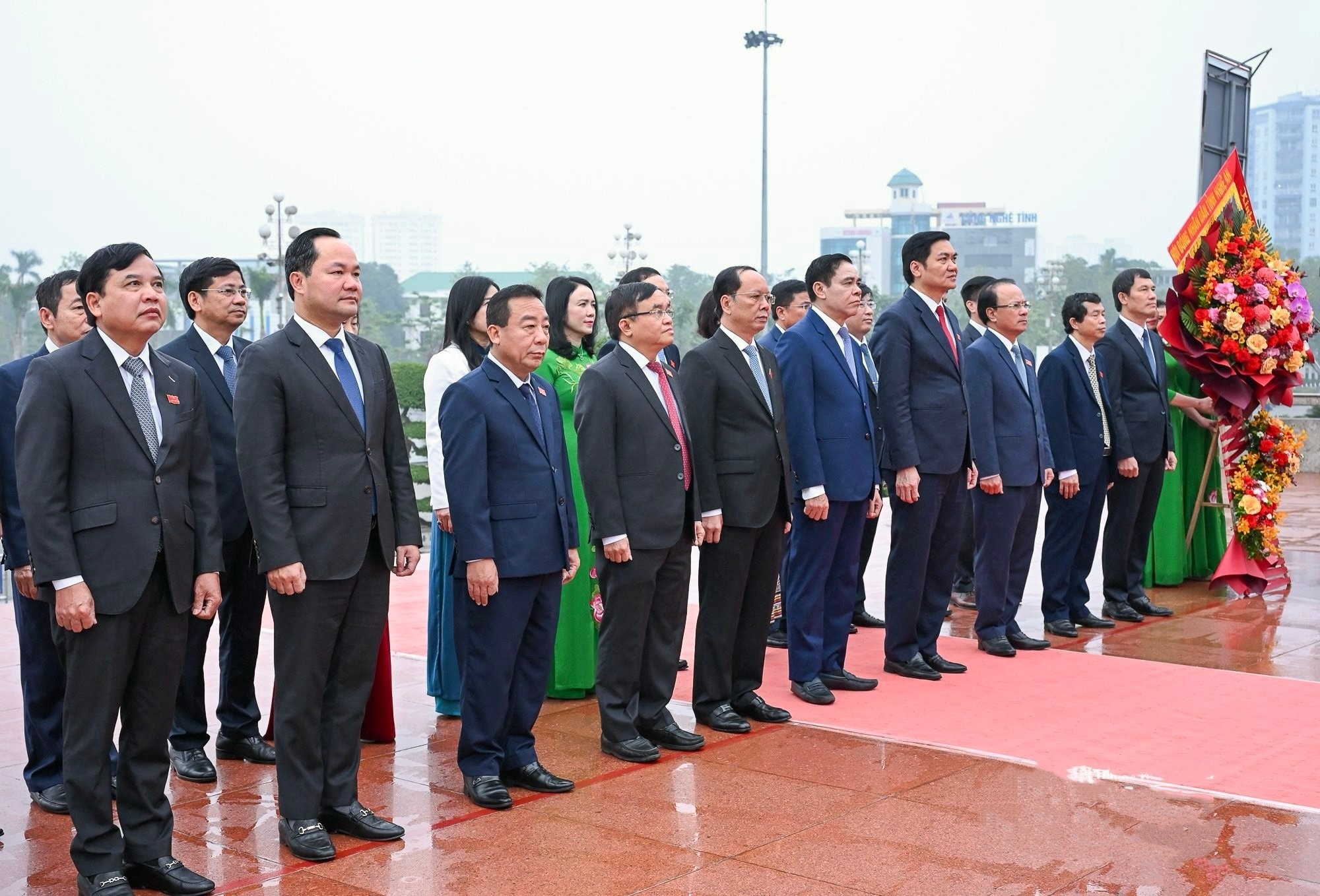 Đoàn đại biểu HĐND tỉnh Nghệ An Khóa XVIII thành kính dâng hoa trước Tượng đài Bác Hồ tại Quảng trường Hồ Chí Minh