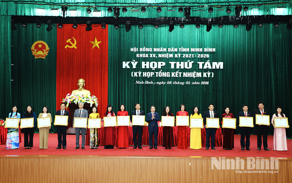 Nhân dịp tổng kết nhiệm kỳ HĐND tỉnh Ninh Bình khóa XV, nhiệm kỳ 2021-2026, đồng chí Chủ tịch UBND tỉnh đã quyết định tặng Bằng khen cho 19 tập thể, 87 cá nhân đã có thành tích xuất sắc đóng góp vào hoạt động của HĐND tỉnh.