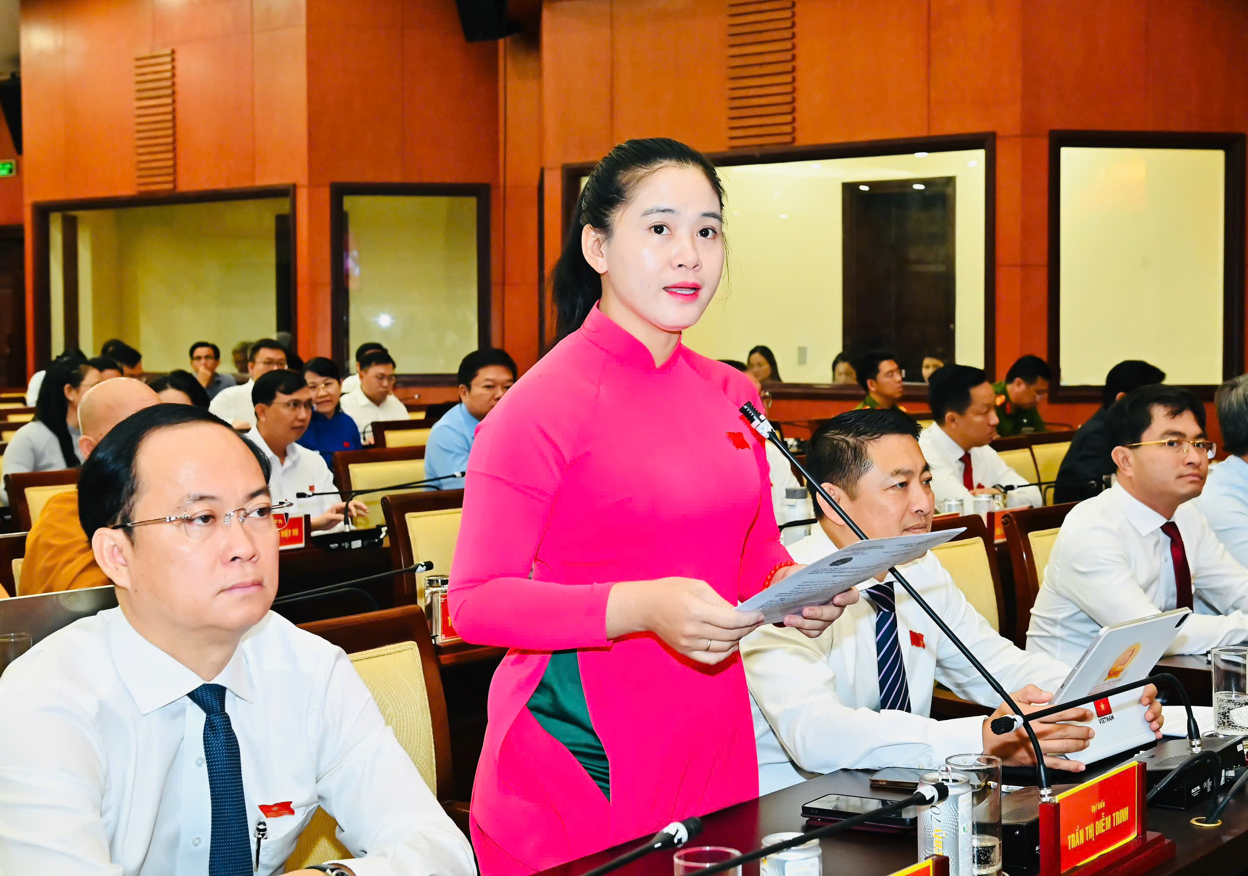 ĐB Trần Thị Diễm Trinh chất vấn tại kỳ họp. Ảnh VIỆT DŨNG