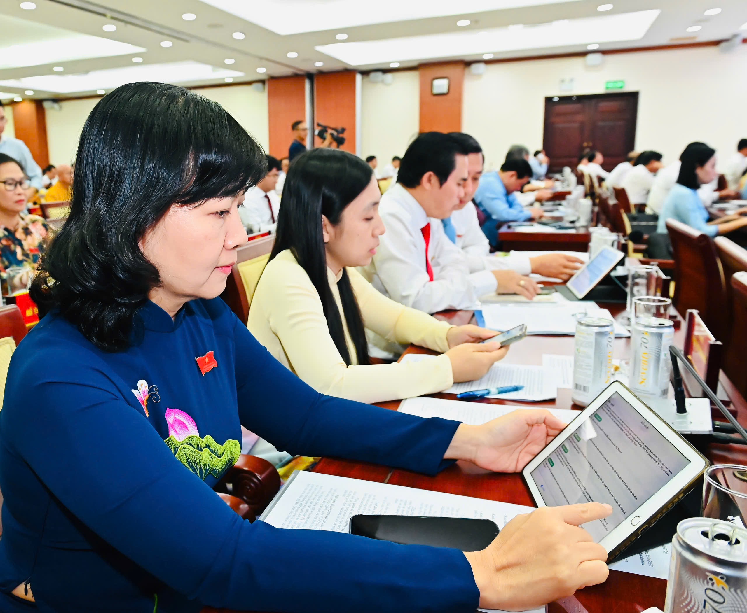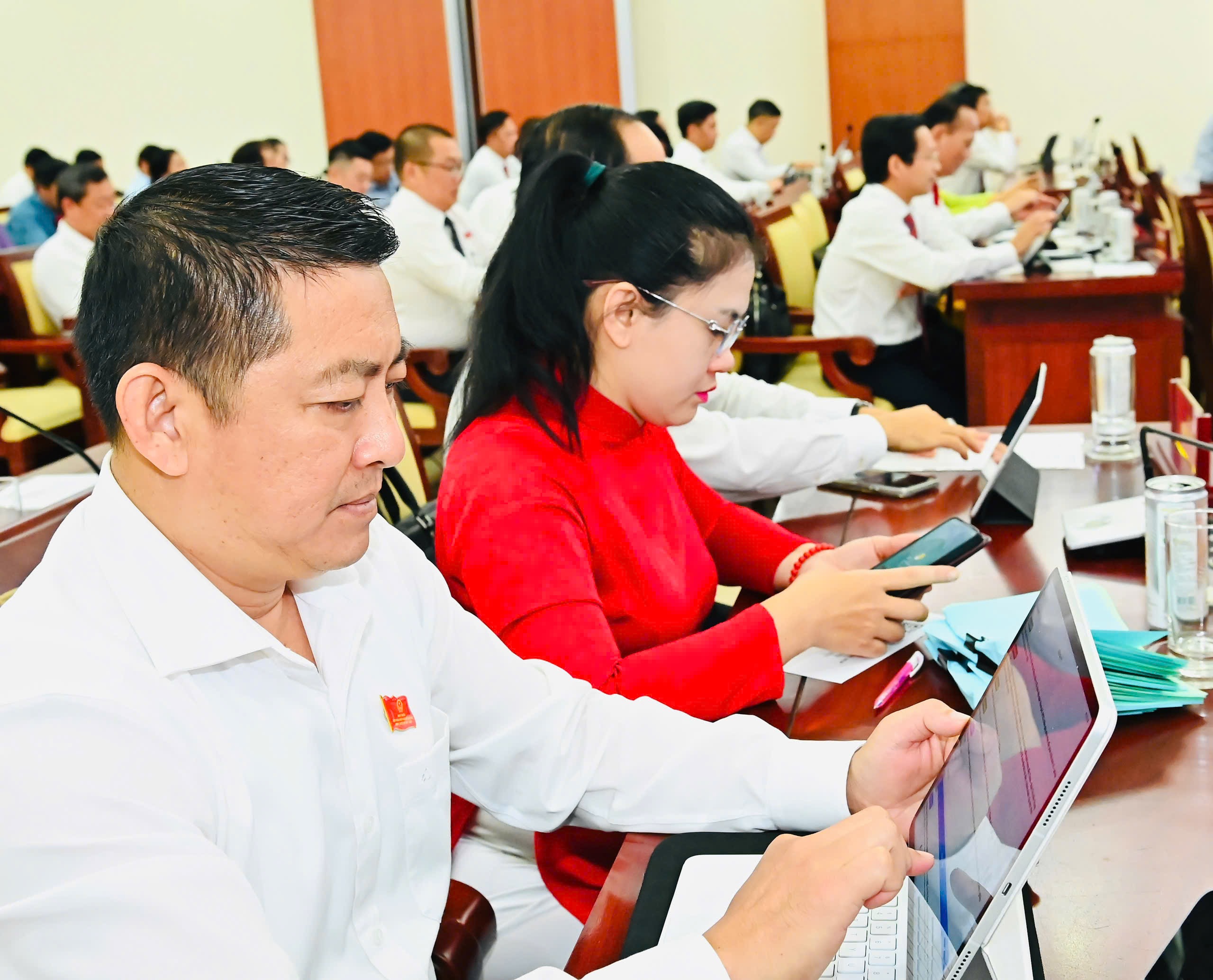 Đại biểu tham dự kỳ họp biểu quyết thông qua các dự thảo nghị quyết. Ảnh: VIỆT DŨNG