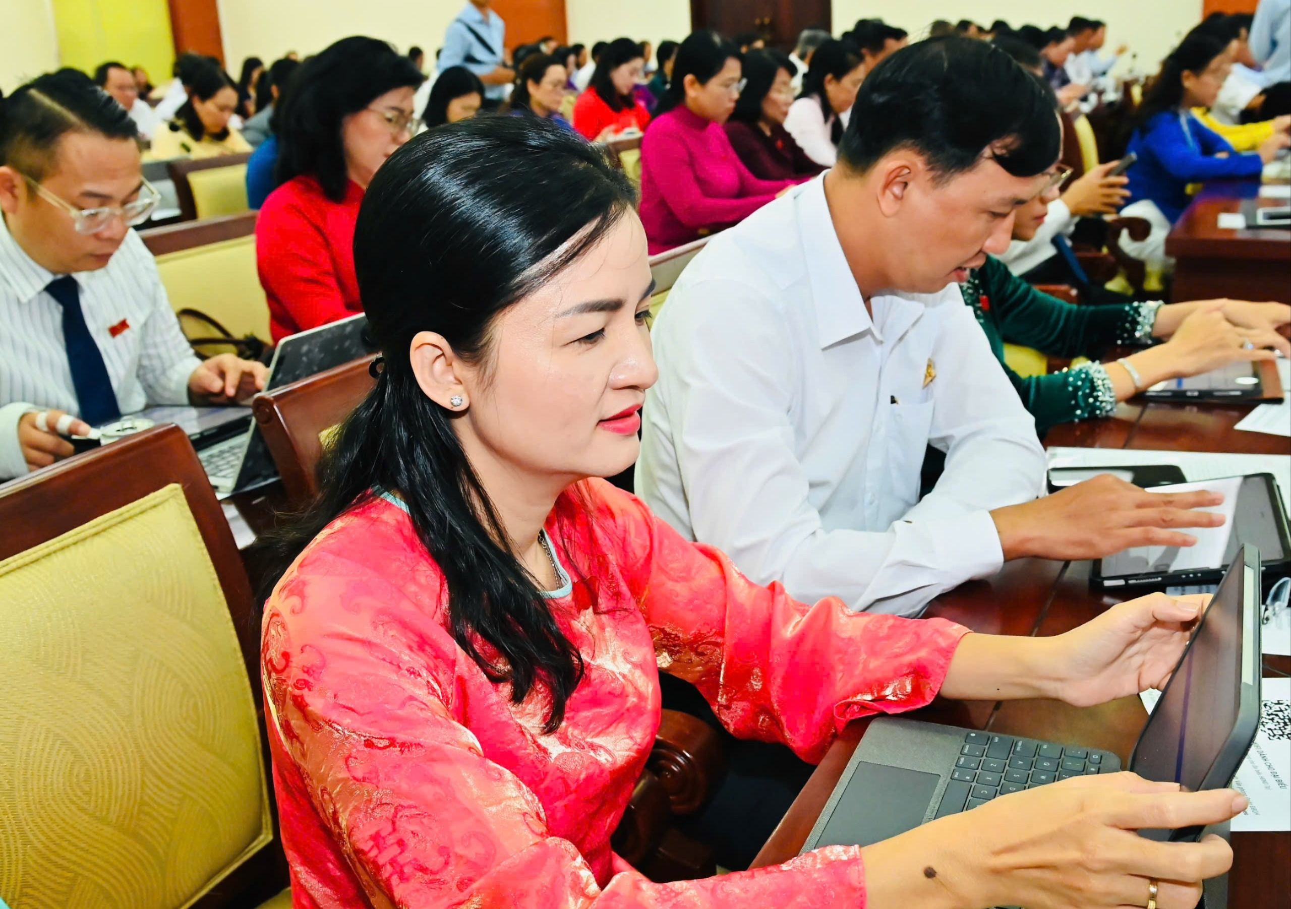 Đại biểu thông qua các dự thảo nghị quyết. Ảnh: VIỆT DŨNG
