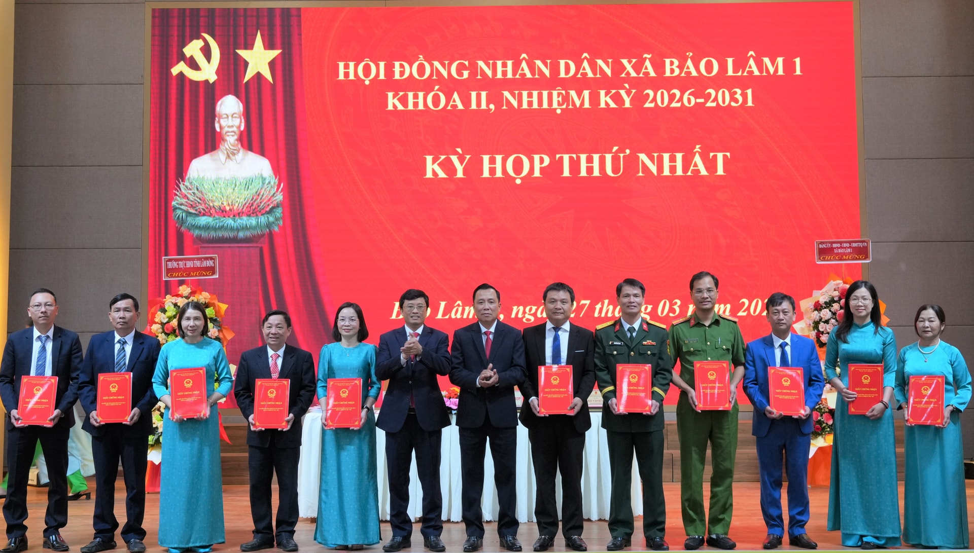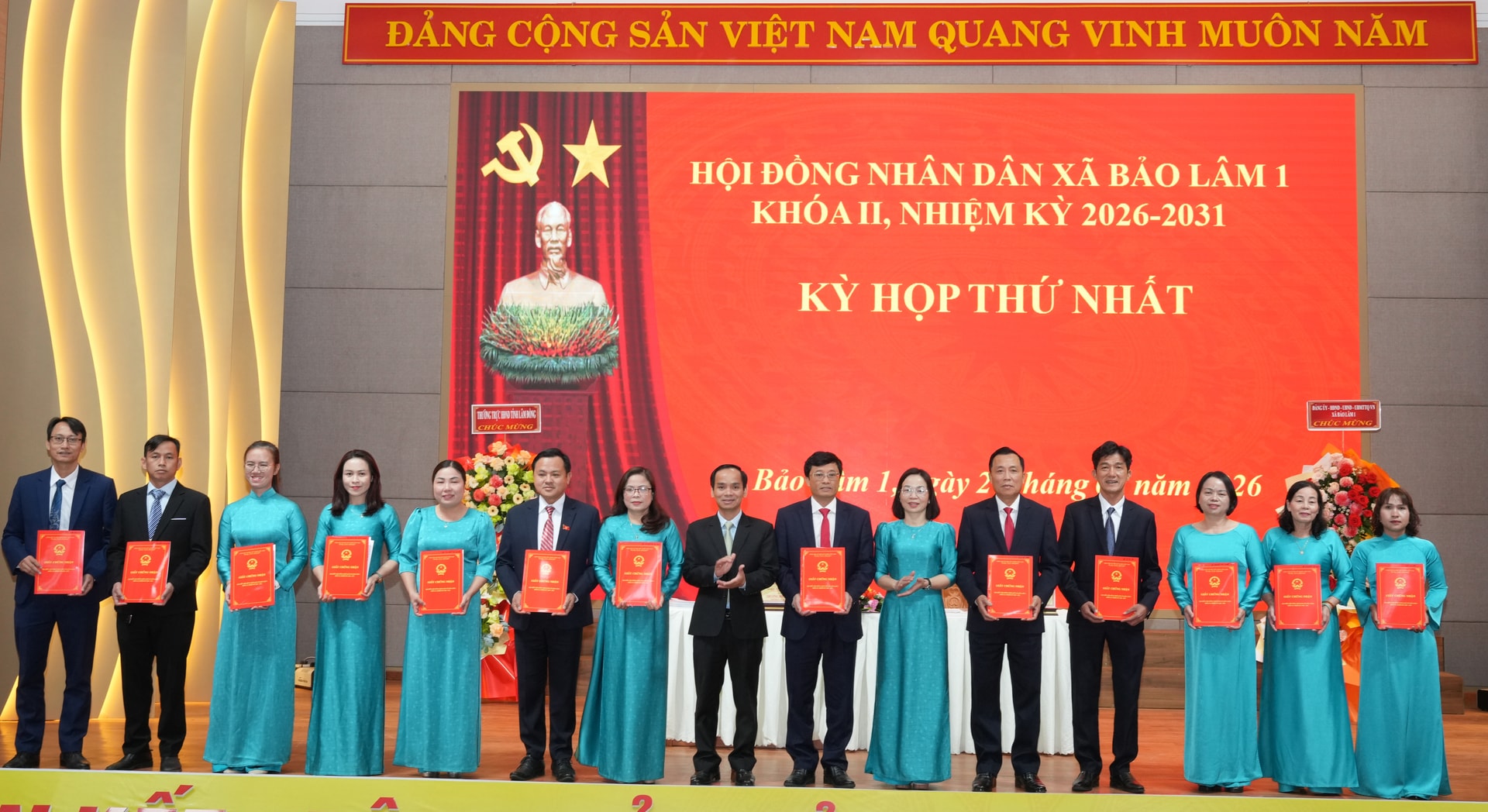 Trao giấy chứng nhận Đại biểu HĐND xã Bảo Lâm 1 Khóa II, nhiệm kỳ 2026-2031 cho các đại biểu