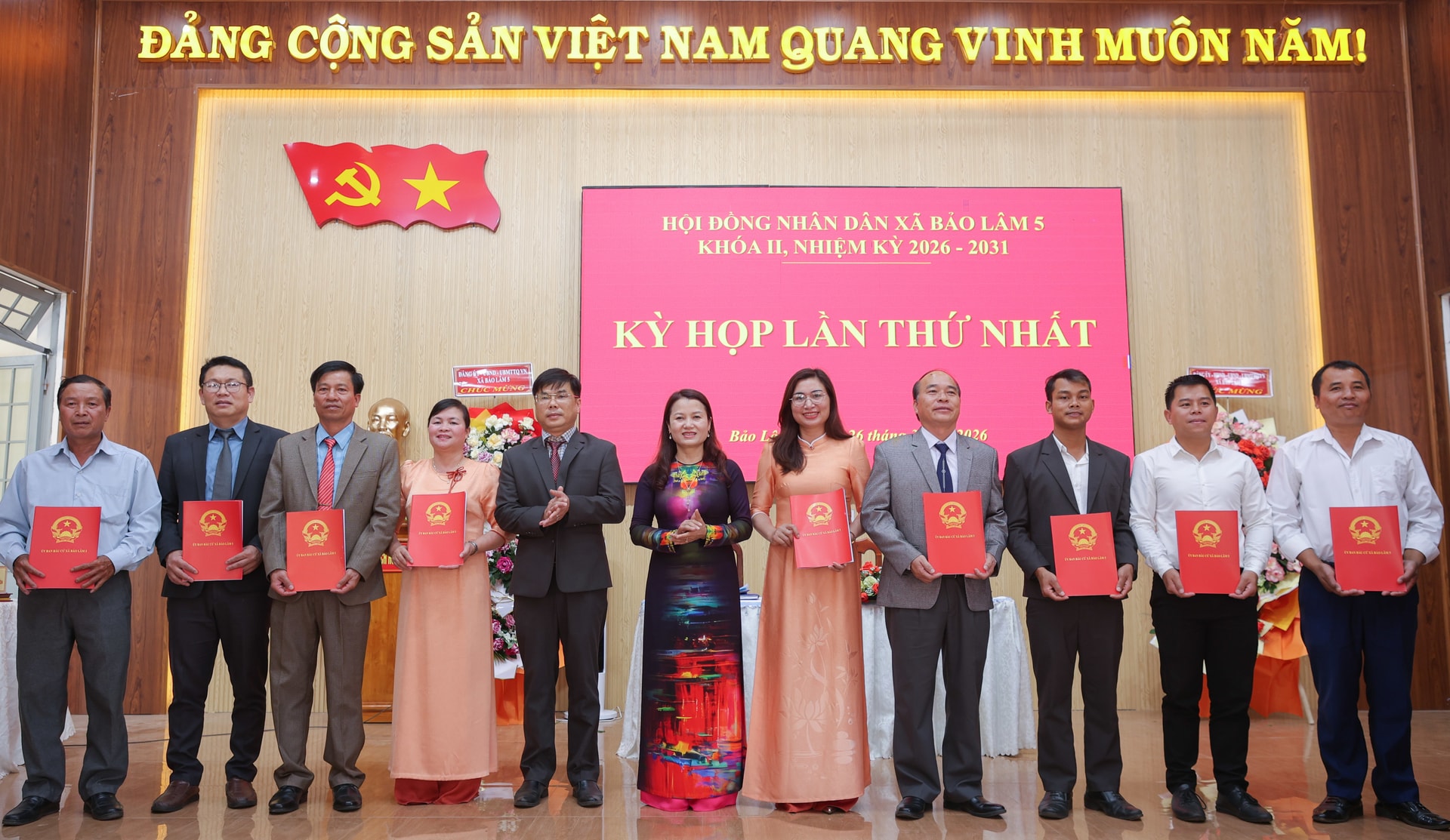 Trao giấy chứng nhận Đại biểu HĐND xã Bảo Lâm 5 Khóa II, nhiệm kỳ 2026-2031 cho các đại biểu