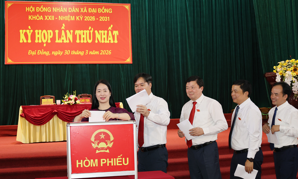 Các đại biểu HĐND xã Đại Đồng bỏ phiếu bầu chức danh Chủ tịch HĐND xã khóa XXII, nhiệm kỳ 2026 - 2031.