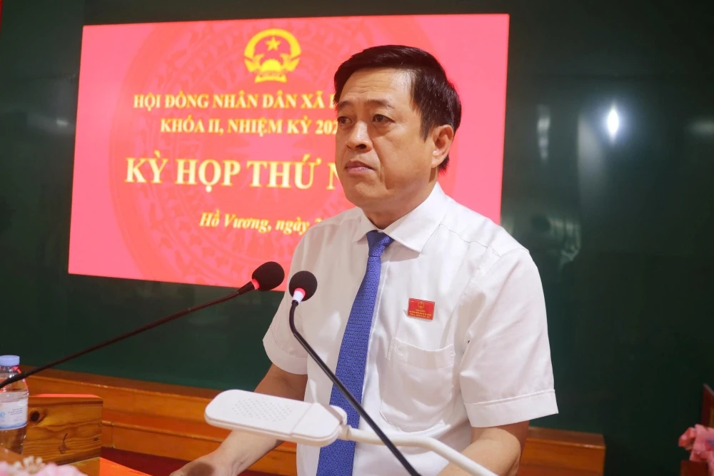 Phát biểu bế mạc kỳ họp, đồng chí Hàn Duy Điều, Bí thư Đảng ủy, Chủ tịch HĐND xã Hồ Vương đề nghị các cơ quan, đơn vị khẩn trương ổn định tổ chức, xây dựng và triển khai chương trình công tác toàn khóa; nâng cao trách nhiệm của đại biểu HĐND, gắn bó với cử tri, kịp thời phản ánh tâm tư, nguyện vọng của Nhân dân. Tăng cường phối hợp, phát huy sức mạnh tổng hợp của cả hệ thống chính trị, quyết tâm thực hiện thắng lợi các mục tiêu phát triển kinh tế - xã hội, đảm bảo quốc phòng - an ninh trên địa bàn.