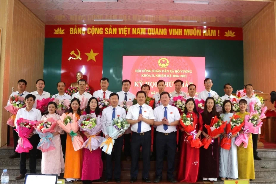 Các đại biểu HĐND xã Hồ Vương nhiệm kỳ 2026-2031 ra mắt tại kỳ họp.