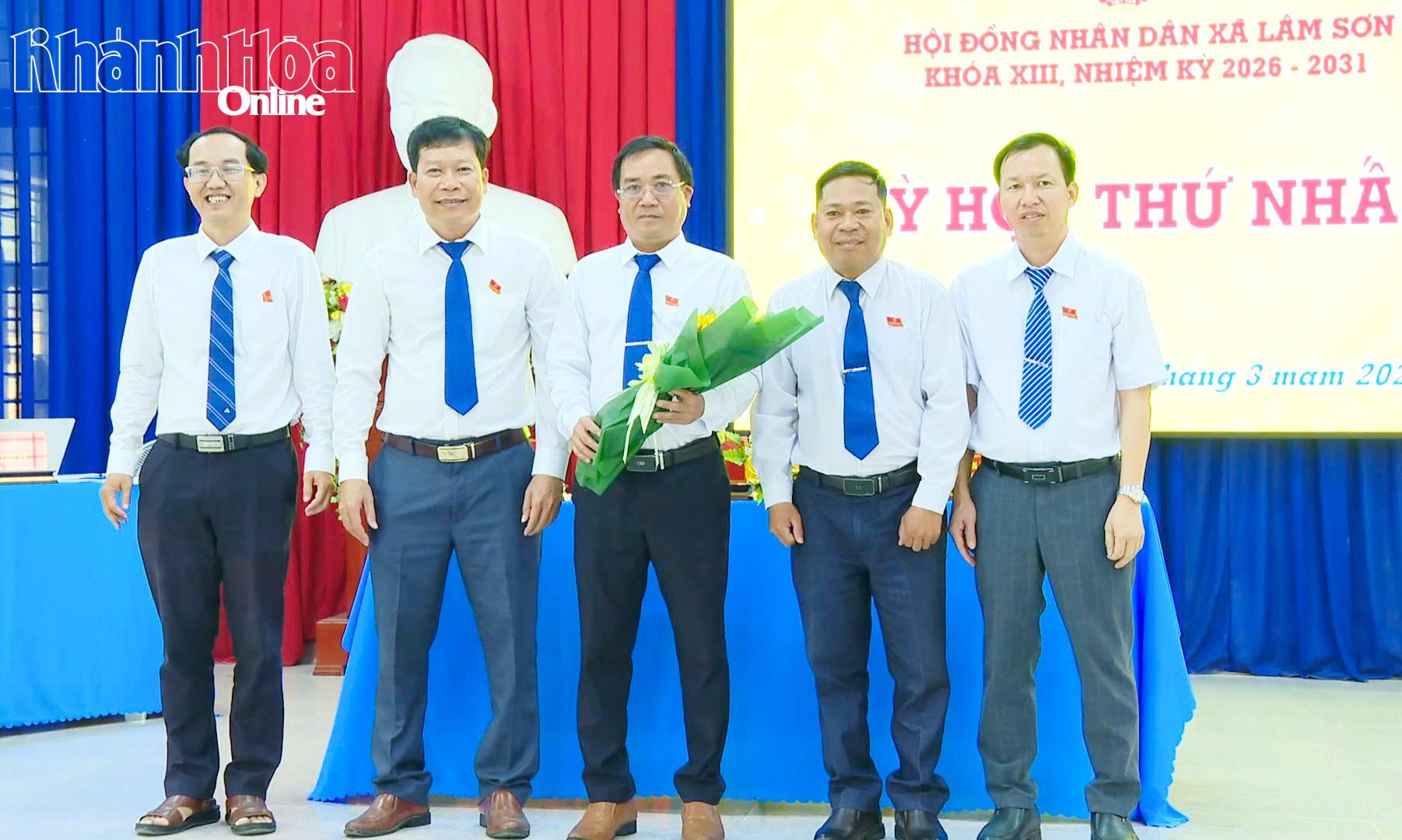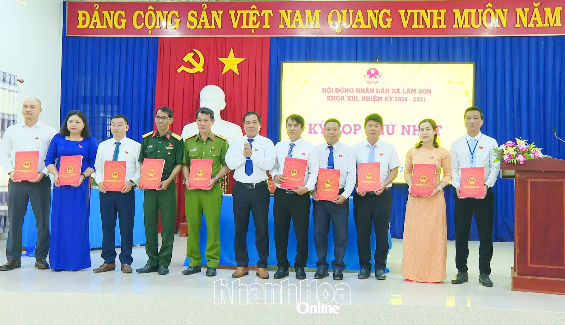 Các đồng chí được bầu giữ các chức danh chủ chốt HĐND xã Lâm Sơn khóa XIII, nhiệm kỳ 2026 - 2031 ra mắt tại kỳ họp.