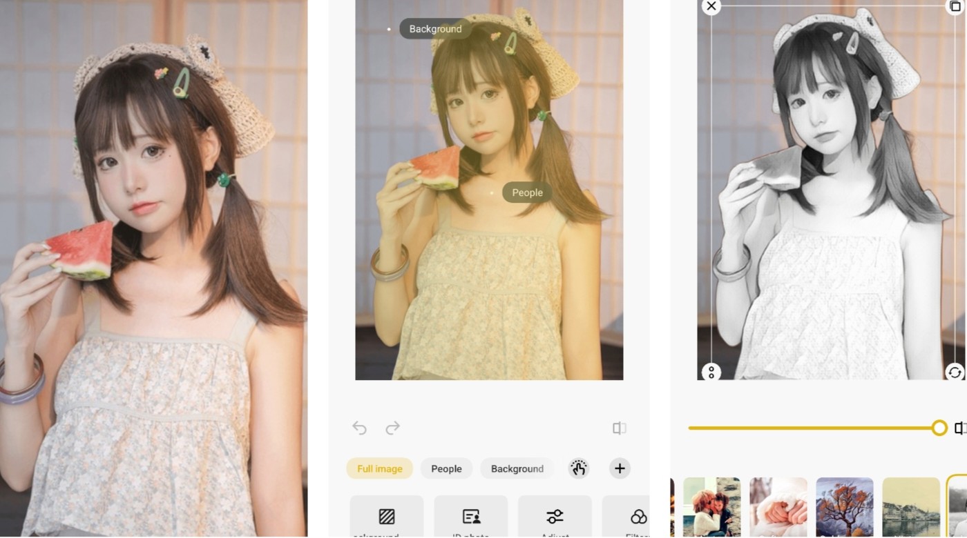 AI tích hợp sâu nhất trong Album, nơi người dùng lưu giữ rất nhiều kỷ niệm từ ảnh cho tới video clip. Nổi bật phải kể đến như AI UHD giúp phục hồi ảnh cũ với độ chi tiết cao. Hay Magic Move tách chủ thể và tự bù nền tự nhiên. Ngoài ra, AI mở rộng ảnh cho phép thay đổi bố cục như ảnh chụp từ góc rộng hơn chỉ trong "nháy mắt".