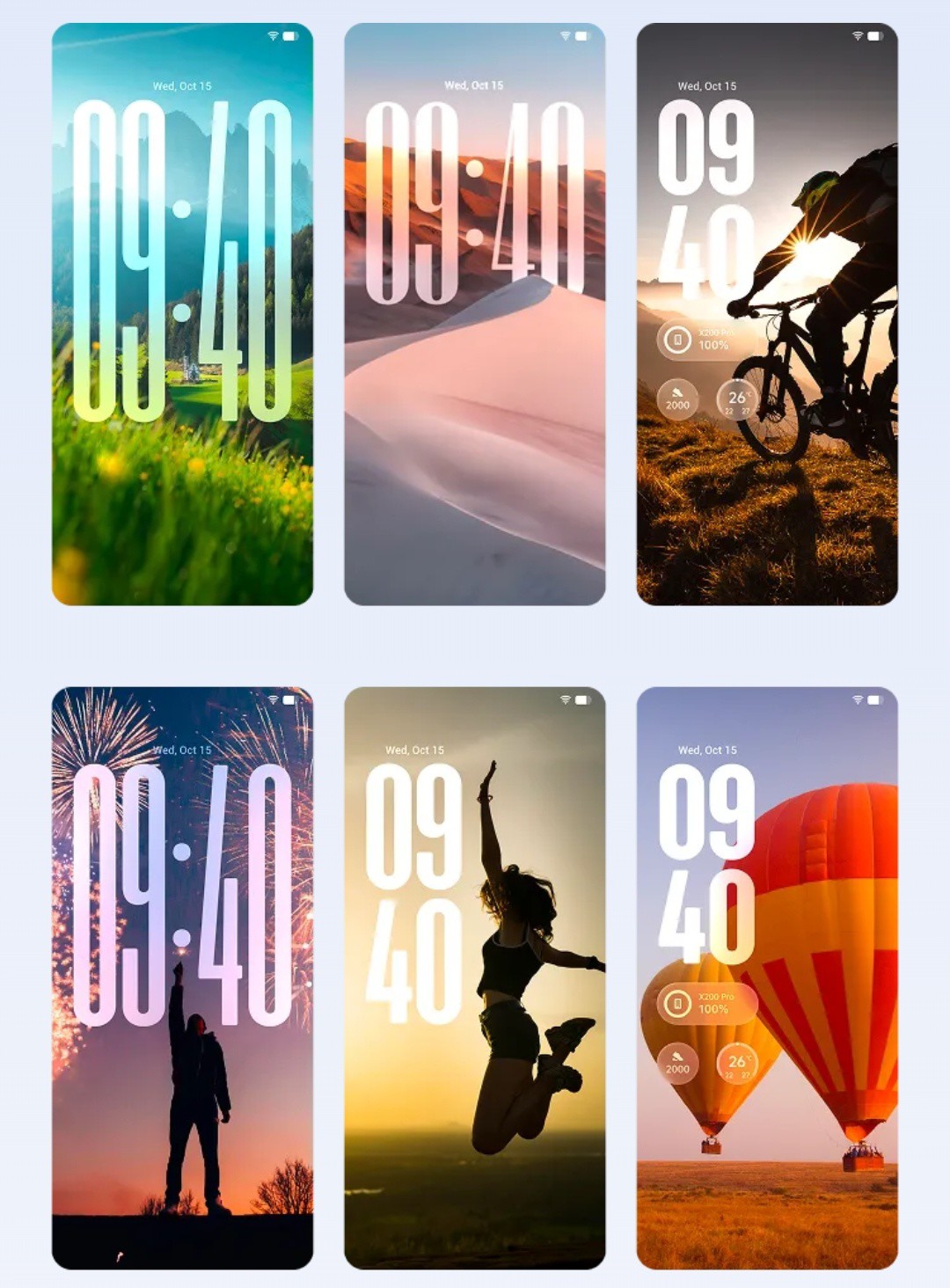 Vivo cũng khá đầu tư cho khóa màn hình, khi giờ đây đã trở thành một không gian sáng tạo riêng. Người dùng có thể chỉnh đồng hồ, chọn kiểu kim cổ điển, đổi màu, thậm chí kéo - thả vị trí đồng hồ bằng thao tác trực quan. Những ai thích phong cách tối giản sẽ có lựa chọn đồng hồ chữ, còn người thích sự cầu kỳ có thể dùng bộ mẫu chuyển động.