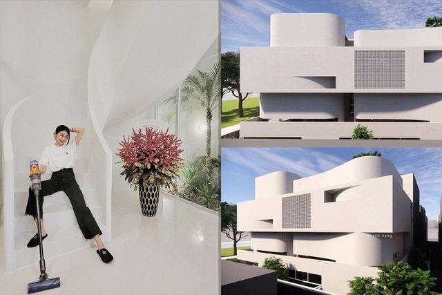 Biệt thự 1.000m2 của Thanh Hằng có màu trắng chủ đạo, xung quanh có nhiều cây xanh. Không gian bên trong rất rộng rãi, nội thất đơn giản. Cơ ngơi này được khởi công xây dựng vào cuối năm 2021.