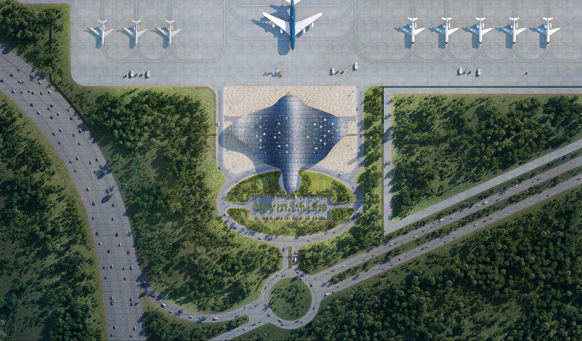 Ý tưởng thiết kế chủ đạo của công trình lấy cảm hứng từ hình dáng uyển chuyển của cá đại bàng biển – loài sinh vật biểu tượng cho sự tự do và sức mạnh bền bỉ của đại dương. Từ đó, không gian nhà ga được xây dựng như một hành trình khám phá nhiều tầng sâu của biển.