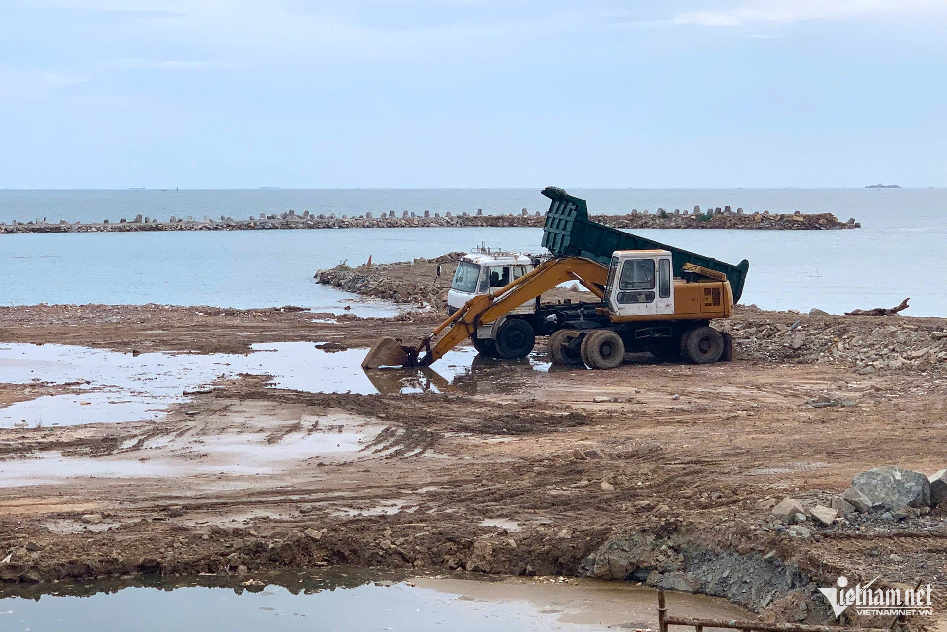 Việc san lấp mặt bằng và đê kè lấn biển tại dự án đã thực hiện trên diện tích khá lớn. Theo quan sát, phần lớn "vật liệu" dùng san lấp là đất, gạch, bê tông vỡ...