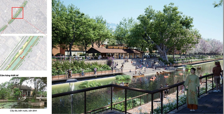 Một phối cảnh được đề xuất lấy cảm hứng từ cầu Duyên - cây cầu cảnh quan đặc biệt lấy cảm hứng từ nhịp bến nước xưa.