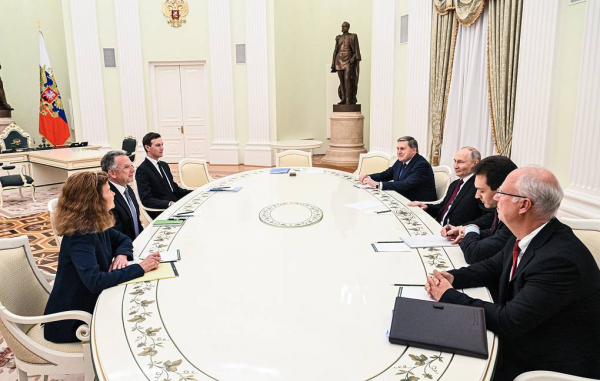 Theo trợ lý Tổng thống Nga, ông Yuri Ushakov, Tổng thống Putin đã chào đón Đặc phái viên Mỹ Steve Witkoff cùng con rể của Tổng thống Mỹ, ông Jared Kushner đến gặp mặt trực tiếp tại Điện Kremlin. Phía Nga còn có sự tham dự của Trợ lý Tổng thống Yuri Ushakov và Đặc phái viên về hợp tác kinh tế - đầu tư với nước ngoài Kirill Dmitriev.
