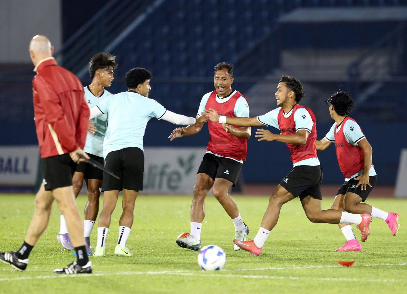 ĐT Nepal tập luyện tại sân Gò Đậu tối 8/10.