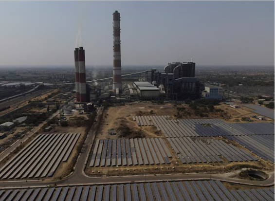 Trang trại mặt trời bên cạnh nhà máy điện NTPC (Tập đoàn Nhiệt điện Quốc gia) ở Solapur, Ấn Độ. (Ảnh: Reuters)
