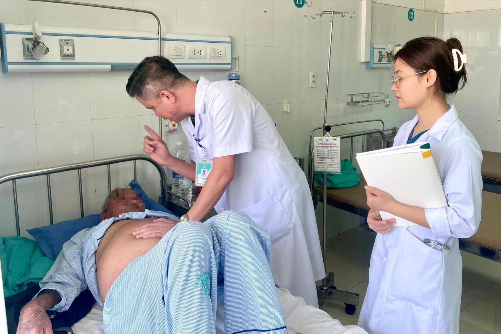 Bác sĩ Bệnh viện 199 thăm khám cho bệnh nhân mắc Hội chứng Cushing kèm suy thượng thận mạn do tự ý sử dụng thuốc giảm đau. Ảnh: Bệnh viện cung cấp