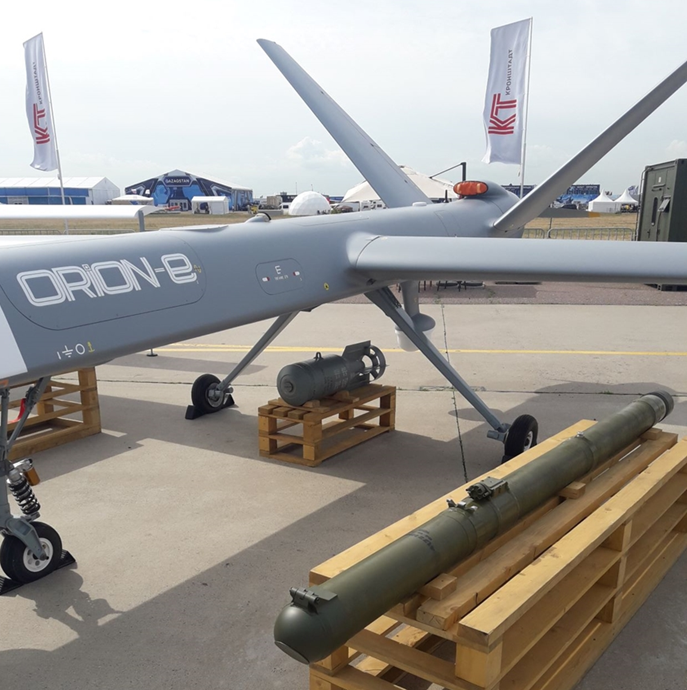 Orion, do Tập đoàn Kronstadt phát triển, là UAV tầm trung - cao (MALE) đầu tiên của Nga đạt sản xuất số lượng lớn. Phiên bản xuất khẩu Orion-E có sải cánh 16m, dài 8m, trọng lượng cất cánh tối đa khoảng 1.150kg và tải trọng vũ khí 250kg. Thiết kế khí động học ưu tiên thời gian bay dài, ổn định và quan sát chính xác thay vì khả năng cơ động cao.