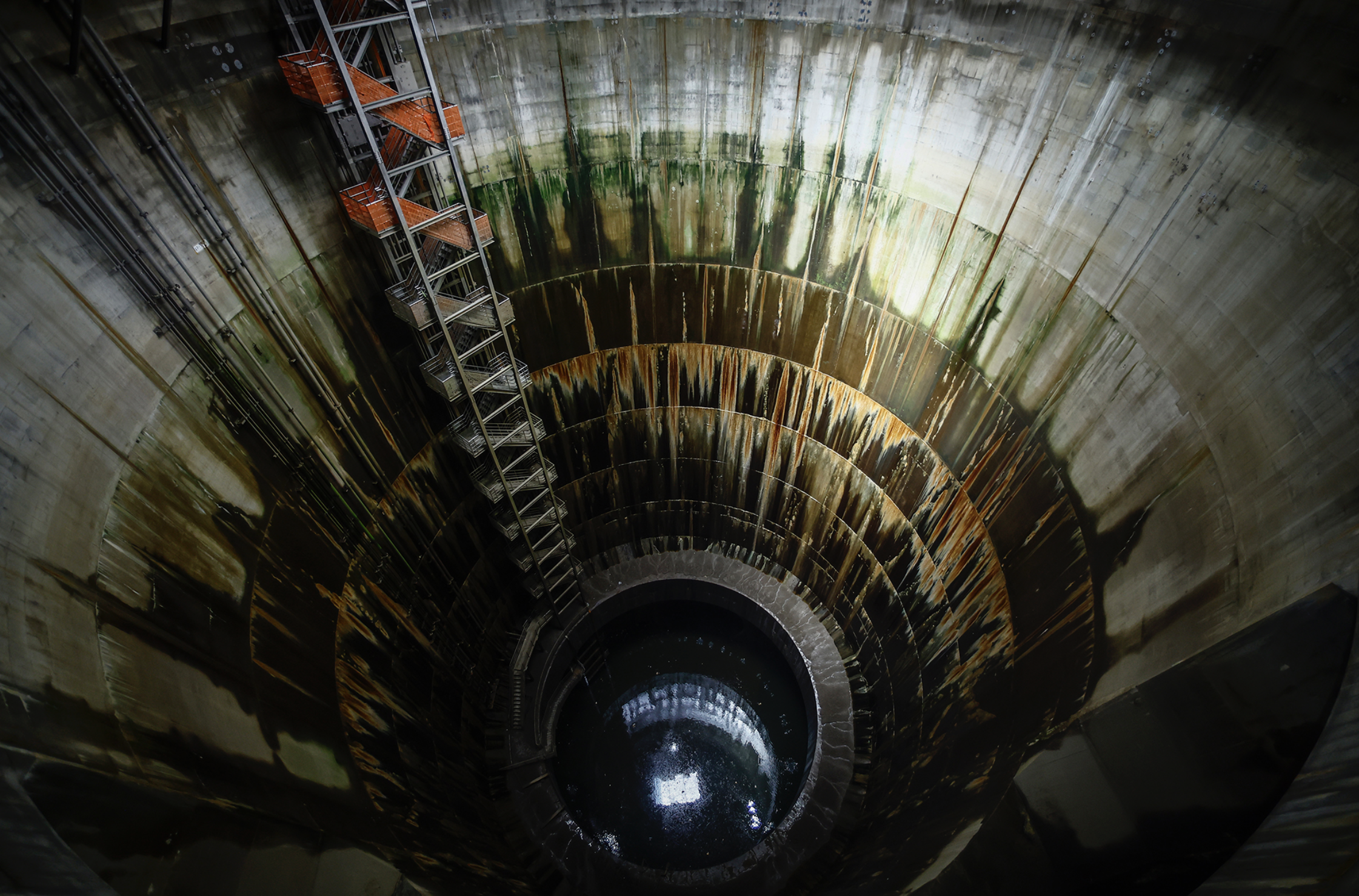 Một bể điều áp khổng lồ được sử dụng để giảm lực nước, giúp dòng chảy ổn định trước khi thoát ra sông. Bên trong bể chứa nước khổng lồ là 59 cột trụ, mỗi cột cao 18 mét, nặng 500 tấn.