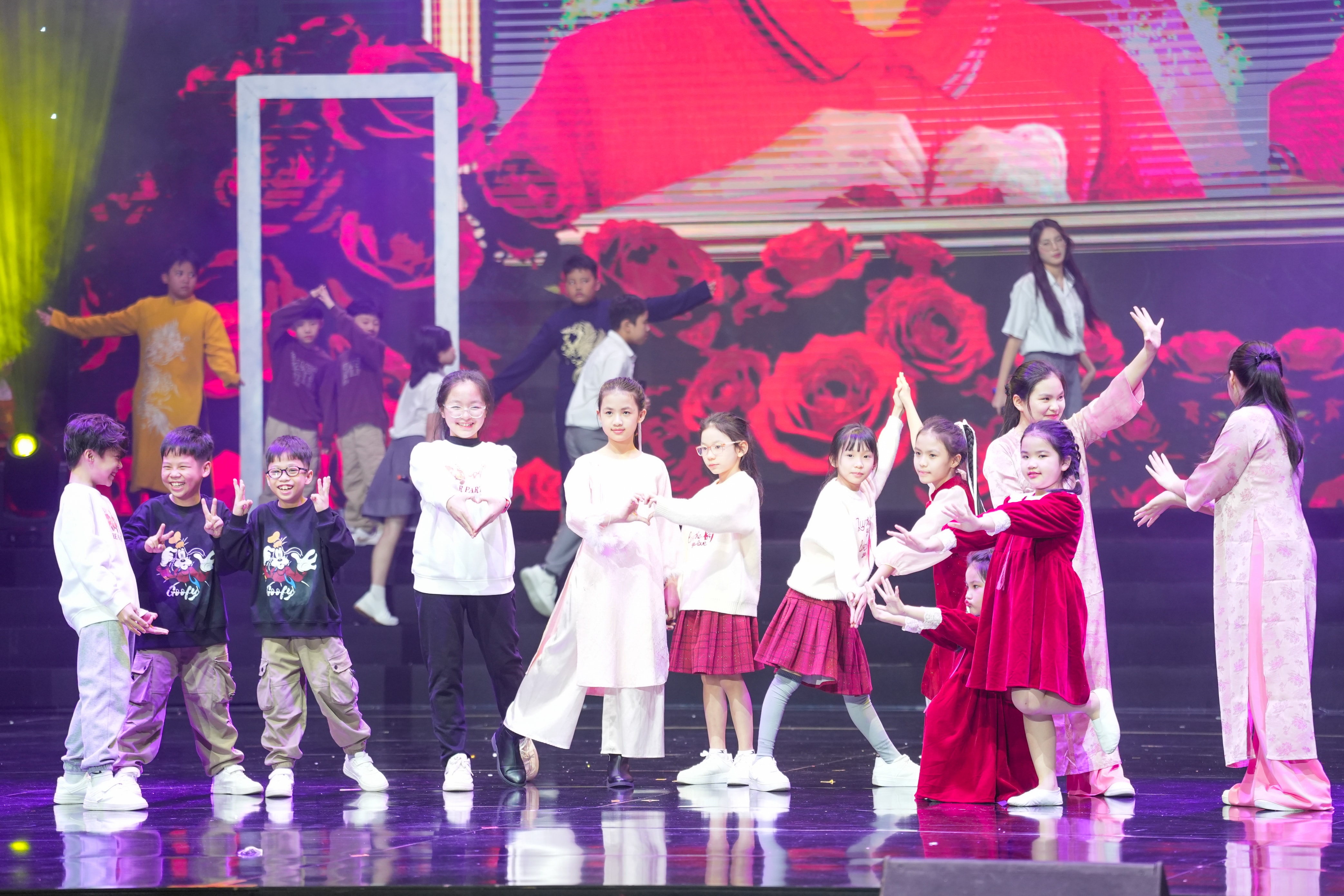 Lần đầu tiên trên sân khấu kỷ niệm, khán giả chứng kiến màn xuất hiện đặc biệt của 20 học sinh song sinh cùng theo học trong hệ thống. Trong tiết mục nhảy hiện đại, các em không chỉ tạo ấn tượng về mặt hình ảnh, mà còn kể một câu chuyện rất “đúng tinh thần giáo dục nhân văn”: học cách đồng hành cùng nhau, được tôn trọng cá tính và phát triển theo cách riêng trong một môi trường khuyến khích sự khác biệt.