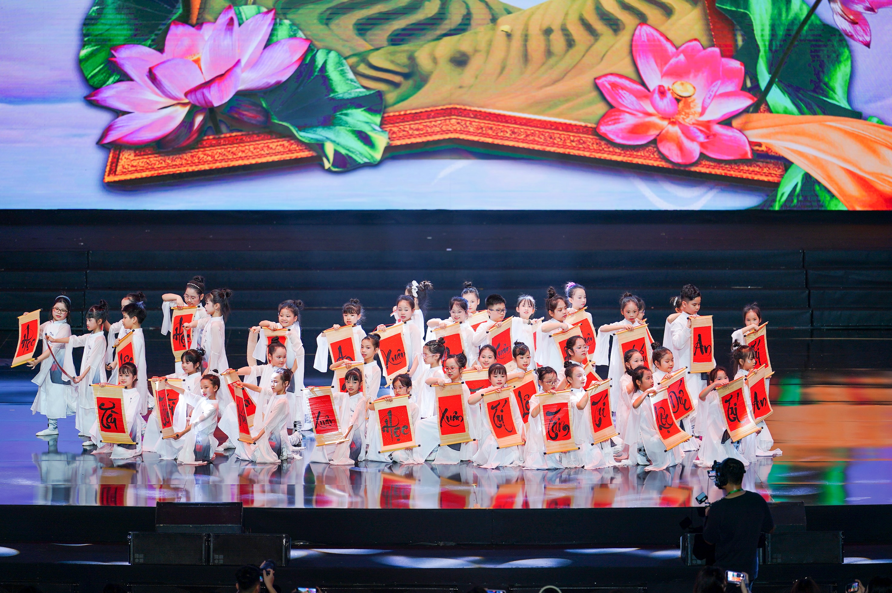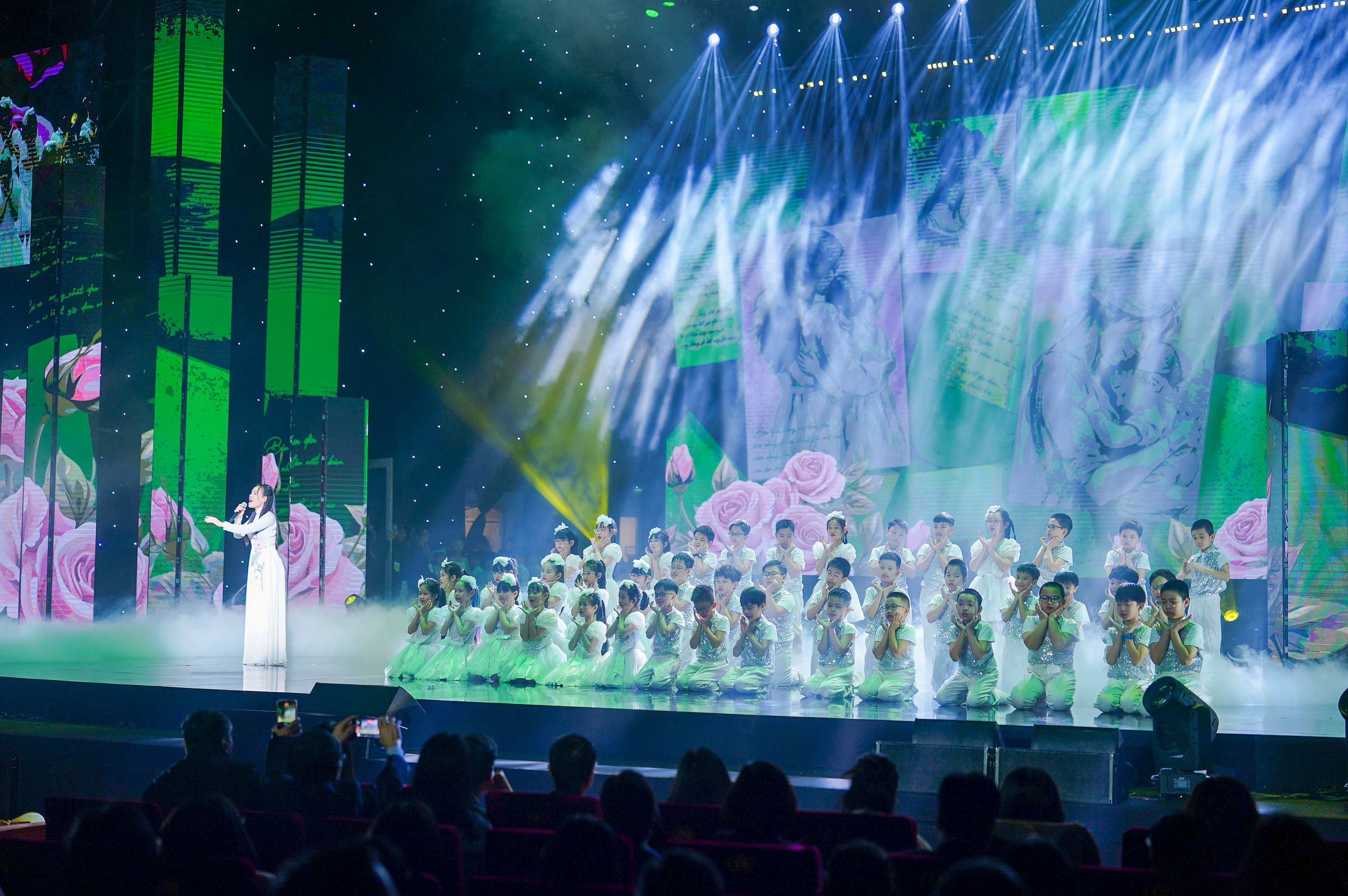Nếu phần nghi lễ là điểm nhấn trang trọng, thì chương trình nghệ thuật "Nghe hoa hồng kể chuyện" lại là phần "chạm" nhất của đêm kỷ niệm. Không phô trương kỹ xảo, chương trình chọn cách kể câu chuyện giáo dục bằng những hình ảnh giản dị nhưng giàu sức gợi: văn hóa, âm nhạc, sự đồng hành, và tinh thần tôn trọng khác biệt.