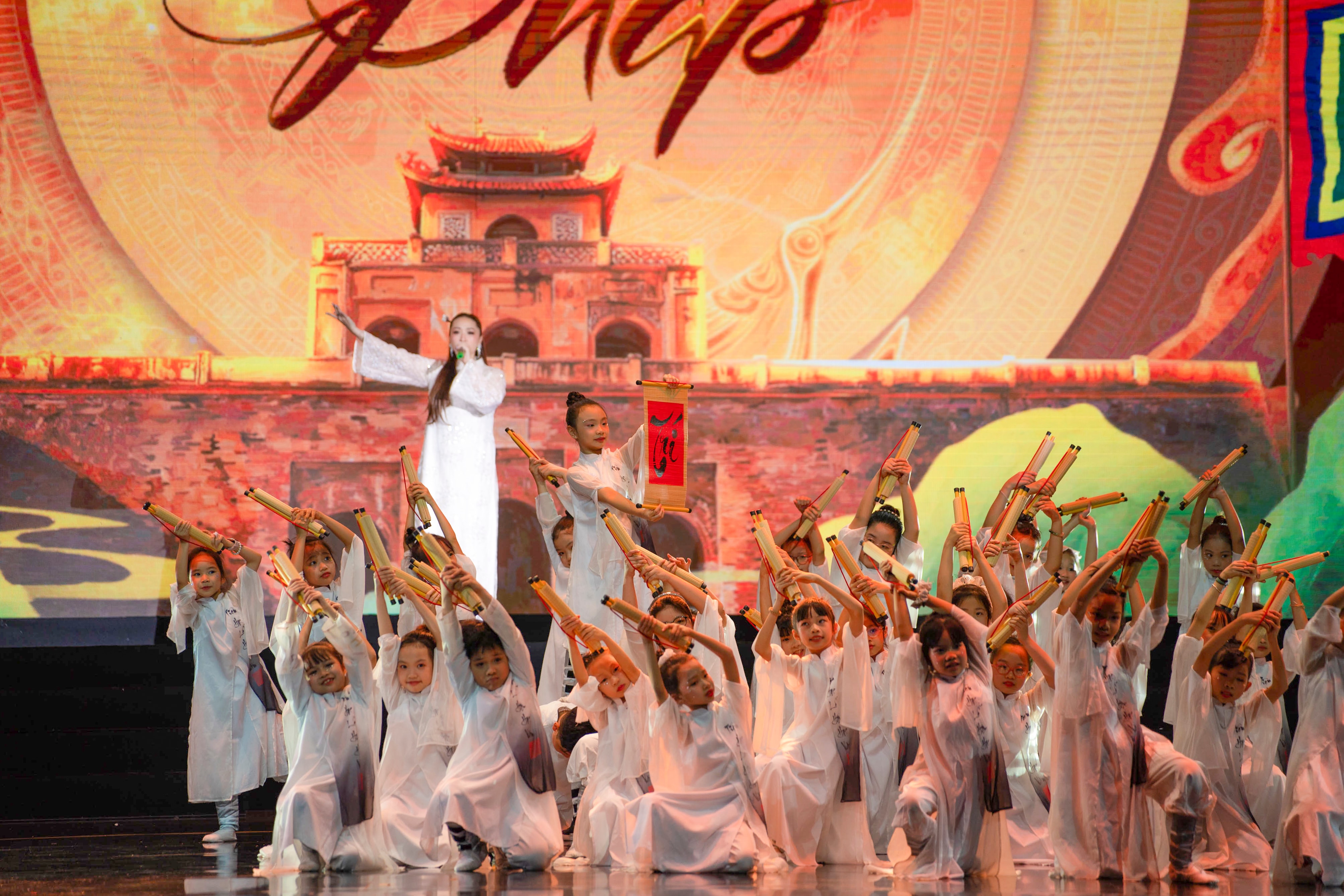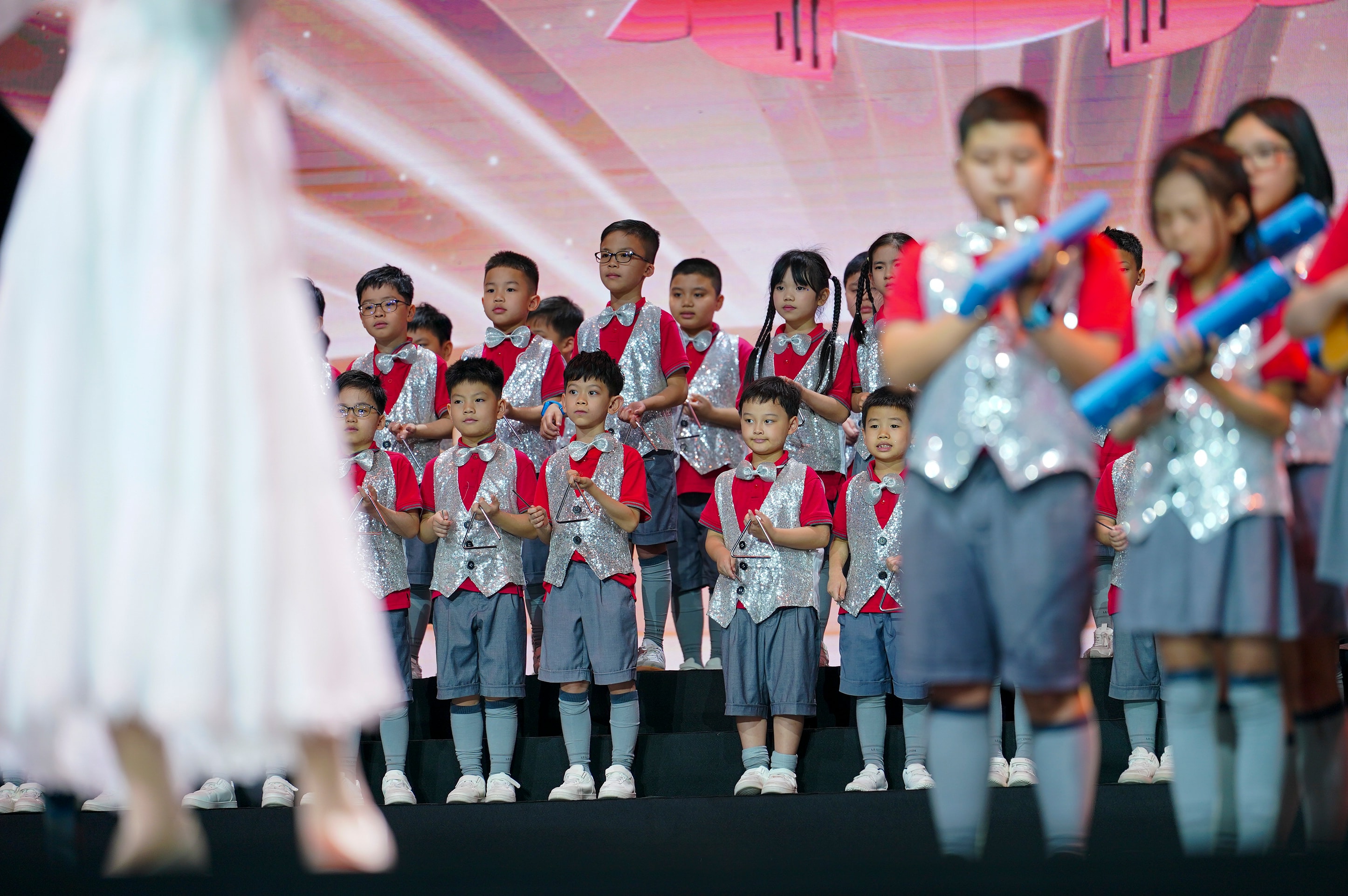 Một điểm nhấn khác của chương trình là màn hòa tấu nhạc cụ của hơn 400 học sinh tiểu học, được xem là dàn nhạc học đường có quy mô lớn hiếm thấy tại Hà Nội.