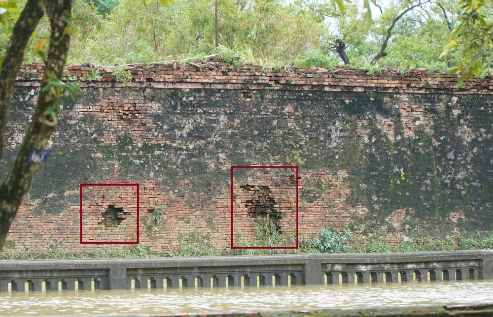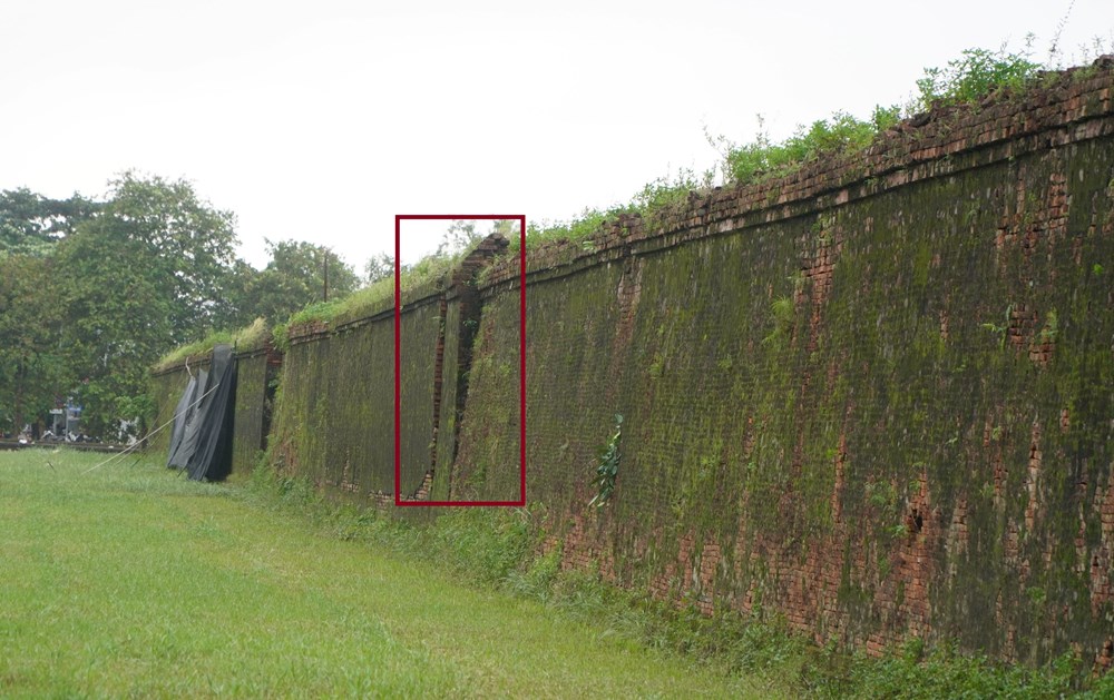 Trung tâm Bảo tồn Di tích Cố đô Huế cũng cho biết, qua khảo sát hệ thống tường Hoàng thành cũng đã phát hiện nhiều điểm nguy cơ.