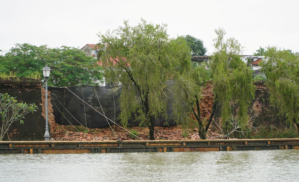 Tối ngày 2.11, mưa lớn kéo dài và nước lũ dâng đã làm đổ sập đoạn tường Hoàng thành ở mặt phía Bắc (hướng đường Đặng Thái Thân, phường Phú Xuân) với chiều dài khoảng 15m.