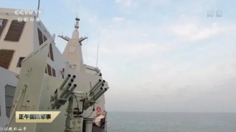 Hệ thống phóng đạn chống người nhái được trang bị trên các tàu Liêu Ninh, Sơn Đông và Type 055. Ảnh: QQnews.