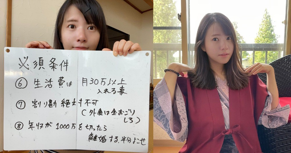 Hành trình tìm chồng của Nushi càng thêm chông gai khi danh sách kỳ vọng về bạn đời tương lai của cô không chỉ dừng lại ở ít tuổi hơn. Cô còn muốn người đó phải đẹp trai, cao ráo, tốt nghiệp đại học và có thu nhập ít nhất 10 triệu yên/năm (khoảng 1,68 tỷ đồng). Trong khi đó, thu nhập của Nushi chỉ khoảng 3 triệu yên mỗi năm (505 triệu đồng). Cô còn tự nhận với Nikkan Spa rằng bản thân chỉ là “phụ nữ bình thường”.