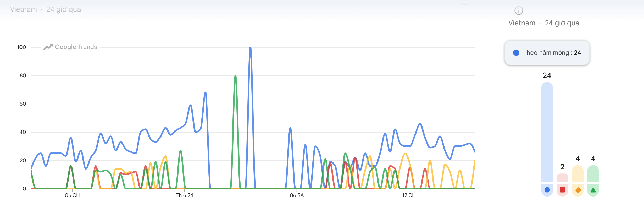 "Diễn biến này cho thấy "Heo năm móng" đang chiếm ưu thế rõ rệt về mức độ được tìm kiếm, bỏ xa phần còn lại trong cùng khoảng thời gian.