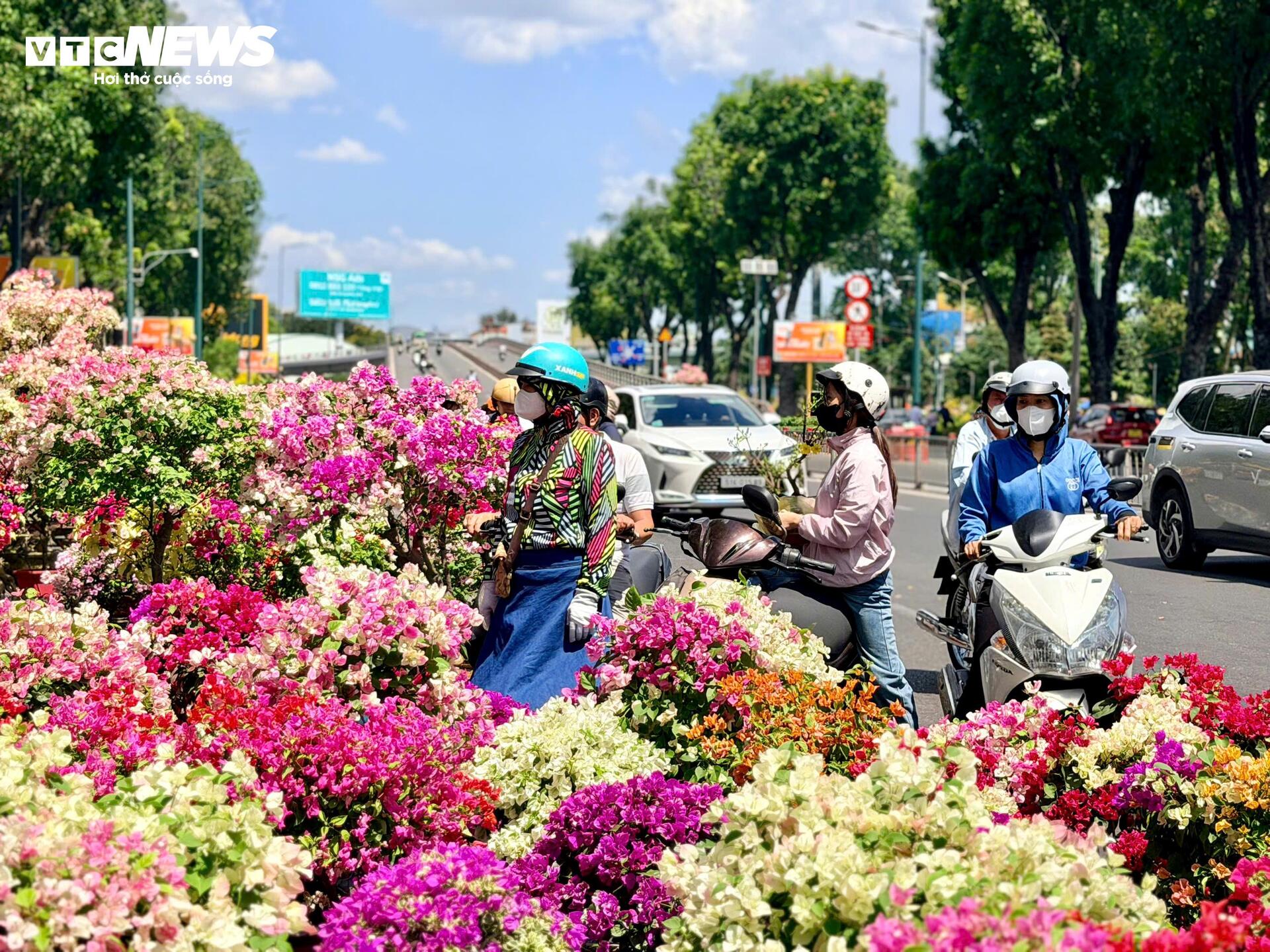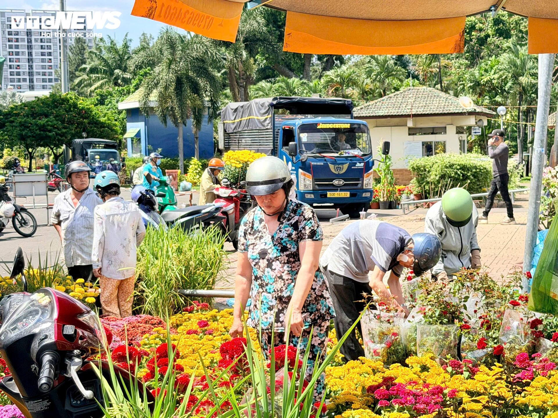 Từ sáng sớm, tại công viên Gia Định và dọc hai bên vỉa hè đường Hoàng Minh Giám (phường Hạnh Thông), những chậu hoa cuối cùng được người dân ghé mua. Đến khoảng 11h, nhiều lô đã trống trơn, chỉ còn lác đác vài chậu được xếp gọn một góc chờ khách.
