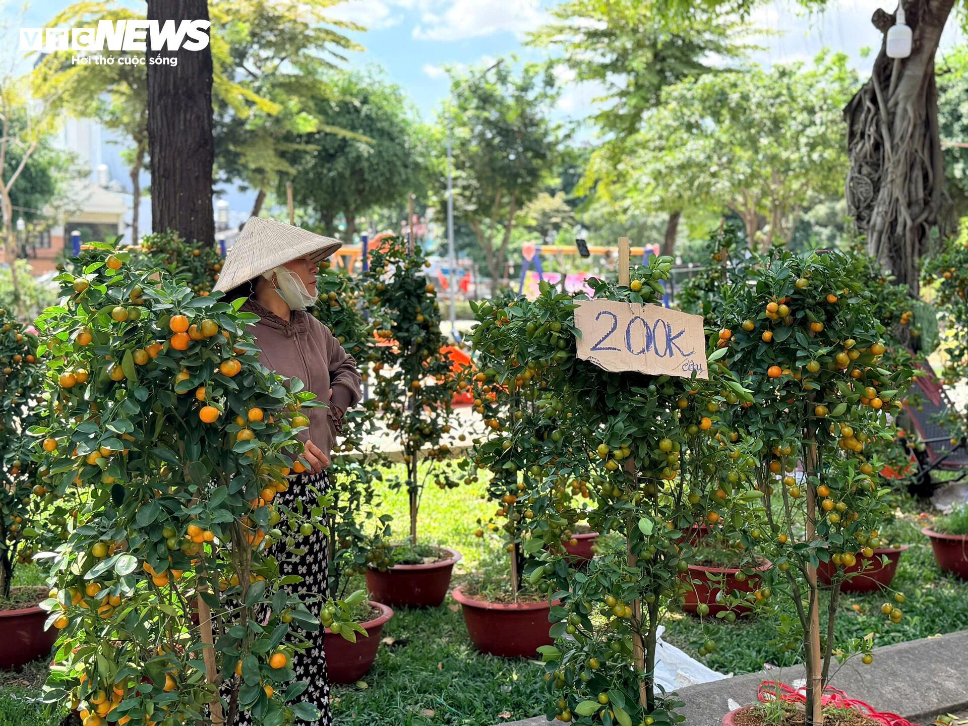 Các chậu quất từng có giá 500.000 - 600.000 đồng nay được bán đồng giá 200.000 đồng.
