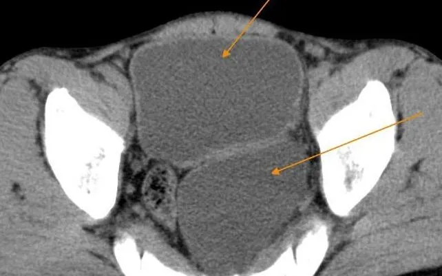 Kết quả CT-Scanner cho thấy người bệnh bị phì đại tuyến tiền liệt gây tắc nghẽn đường tiểu dưới, đồng thời có túi thừa bàng quang kích thước lớn. Túi thừa này hoạt động như một "bàng quang thứ hai", khiến dòng tiểu ứ đọng, gây tiểu khó, tiểu không hết và tăng nguy cơ viêm nhiễm đường tiết niệu. Nếu kéo dài, tình trạng này có thể ảnh hưởng đến chức năng thận.